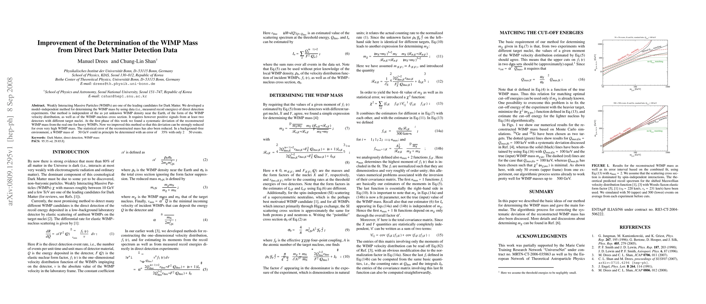 This paper presents a model-independent method for determining the mass of WIMPs using data from direct dark matter detection experiments, reducing systematic deviations and statistical errors. The improved method can determine a WIMP mass of ~50 GeV with an error of ~35% using signals from two detectors with different target nuclei.