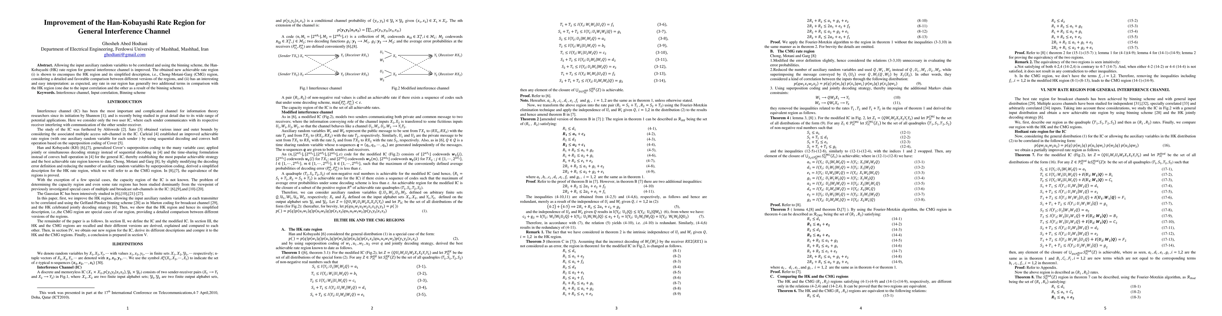 This paper improves the Han-Kobayashi rate region for general interference channels by allowing correlated input auxiliary random variables and employing a binning scheme. The new achievable rate region encompasses both the original Han-Kobayashi region and the simplified Chong-Motani-Garg region, with each rate having two additional terms due to input correlation and the binning scheme.