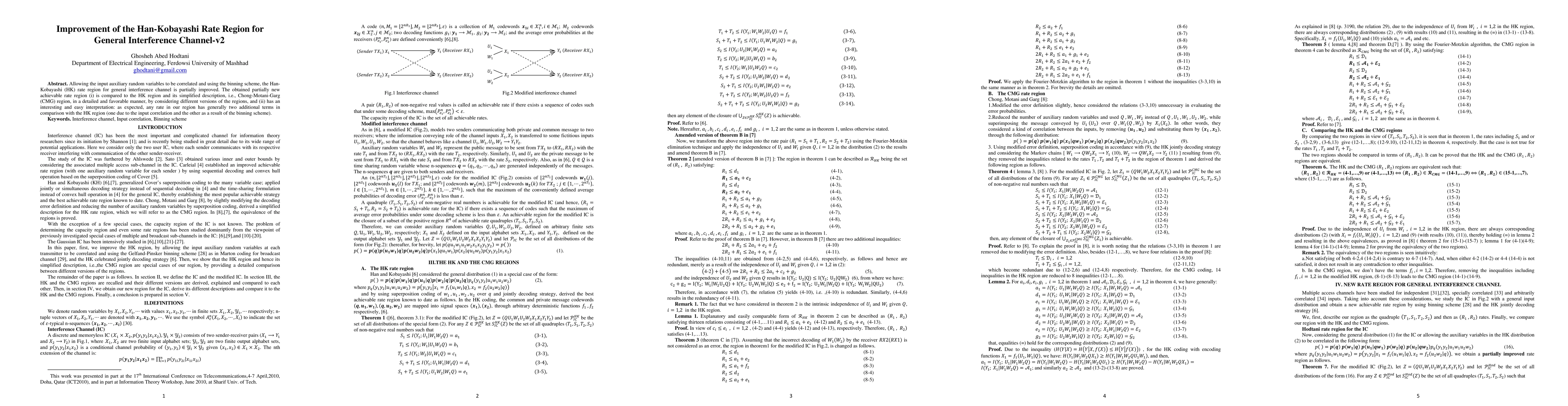 Allowing the input auxiliary random variables to be correlated and using the binning scheme, the Han-Kobayashi (HK) rate region for general interference channel is partially improved. The obtained partially new achievable rate region (i) is compared to the HK region and its simplified description, i.e., Chong-Motani-Garg (CMG) region, in a detailed and favorable manner, by considering different versions of the regions, and (ii) has an interesting and easy interpretation: as expected, any rate in our region has generally two additional terms in comparison with the HK region (one due to the input correlation and the other as a result of the binning scheme). Keywords. Interference channel, Input correlation, Binning scheme