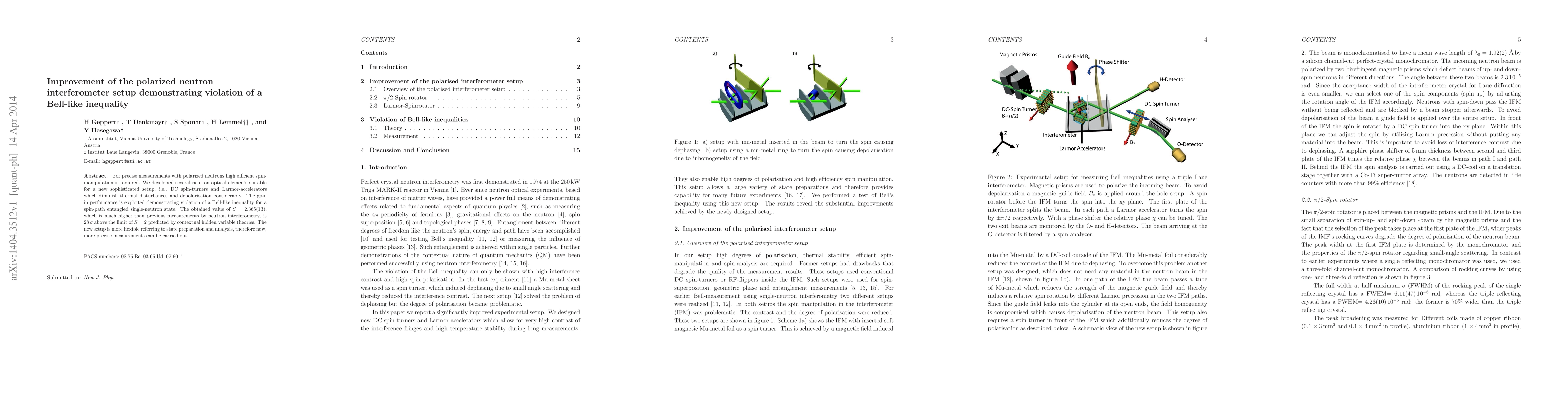 For precise measurements with polarized neutrons high efficient spin-manipulation is required. We developed several neutron optical elements suitable for a new sophisticated setup, i.e., DC spin-turners and Larmor-accelerators which diminish thermal disturbances and depolarisation considerably. The gain in performance is exploited demonstrating violation of a Bell-like inequality for a spin-path entangled single-neutron state. The obtained value of S=2.365(13), which is much higher than previous measurements by neutron interferometry, is 28 $\sigma$ above the limit of S=2 predicted by contextual hidden variable theories. The new setup is more flexible referring to state preparation and analysis, therefore new, more precise measurements can be carried out.
