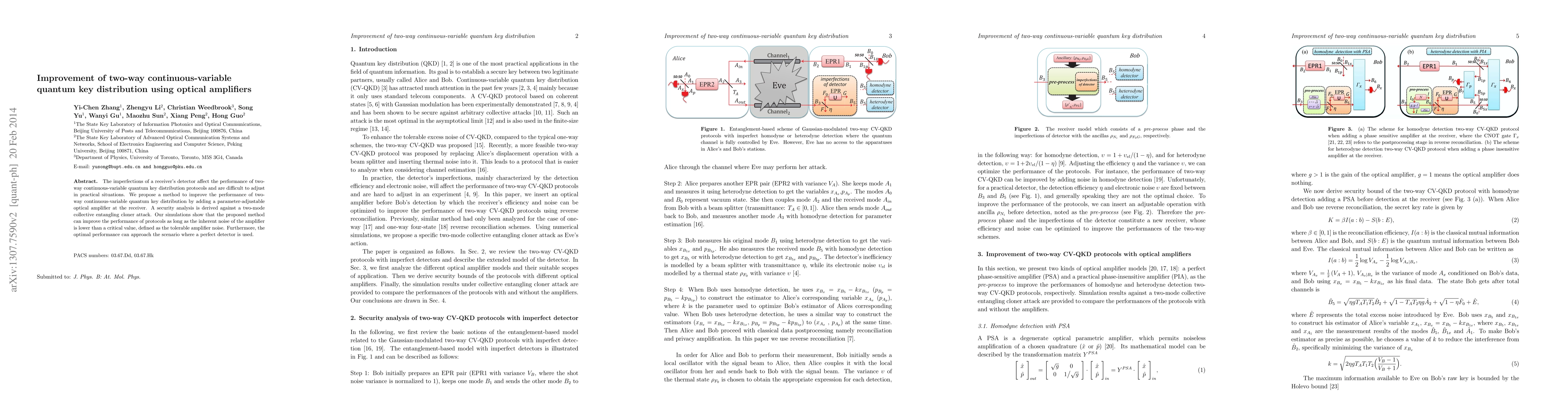 This paper proposes an improvement to two-way continuous-variable quantum key distribution by incorporating a parameter-adjustable optical amplifier at the receiver to mitigate detector imperfections. The method is shown to enhance protocol performance, provided the amplifier's noise remains below a defined tolerable threshold, with security analyzed against a two-mode collective entangling cloner attack.