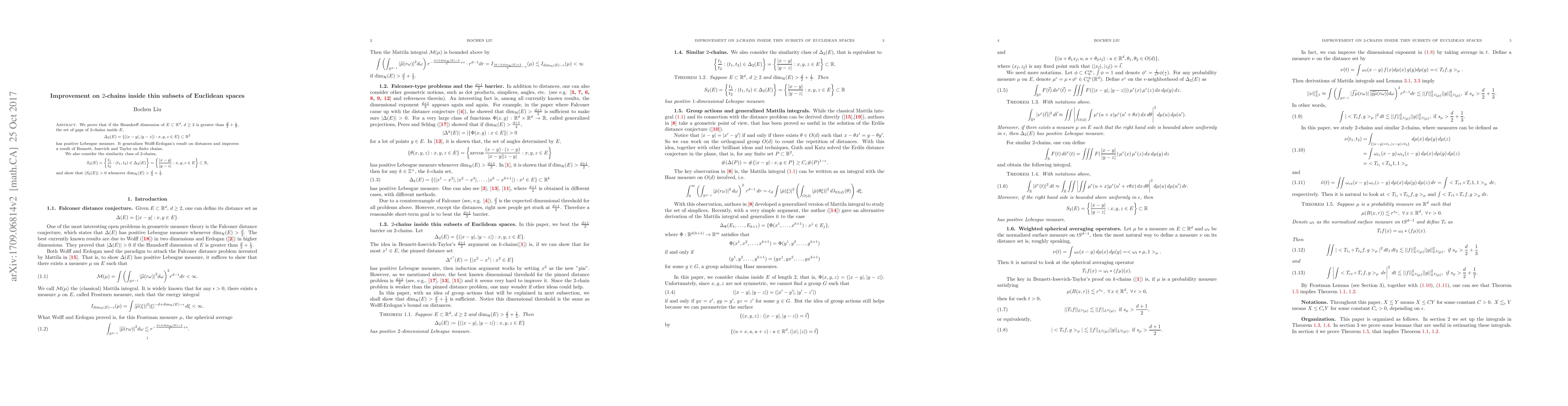 We prove that if the Hausdorff dimension of $E\subset\mathbb{R}^d$, $d\geq 2$ is greater than $\frac{d}{2}+\frac{1}{3}$, the set of gaps of $2$-chains inside $E$, $$\Delta_2(E)=\{(|x-y|, |y-z|): x, y, z\in E \}\subset\mathbb{R}^2$$ has positive Lebesgue measure. It generalizes Wolff-Erdogan's result on distances and improves a result of Bennett, Iosevich and Taylor on finite chains. We also consider the similarity class of $2$-chains, $$S_2(E)=\left\{\frac{t_1}{t_2}:(t_1,t_2)\in\Delta_2(E)\right\}=\left\{\frac{|x-y|}{|y-z|}: x, y, z\in E \right\}\subset\mathbb{R},$$ and show that $|S_2(E)|>0$ whenever $\dim_{\mathcal{H}}(E)>\frac{d}{2}+\frac{1}{7}$.