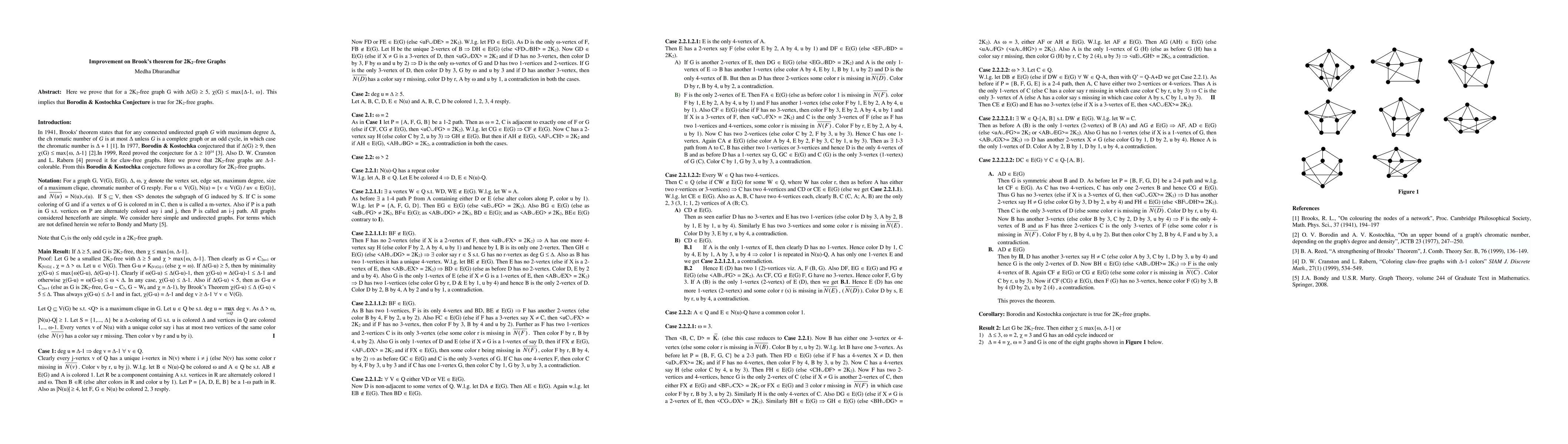 The research proves that for 2K2-free graphs with a maximum degree of at least 5, the chromatic number is capped by the formula max{maximum degree-1, maximum clique size}. This confirms the Borodin & Kostochka Conjecture for 2K2-free graphs.