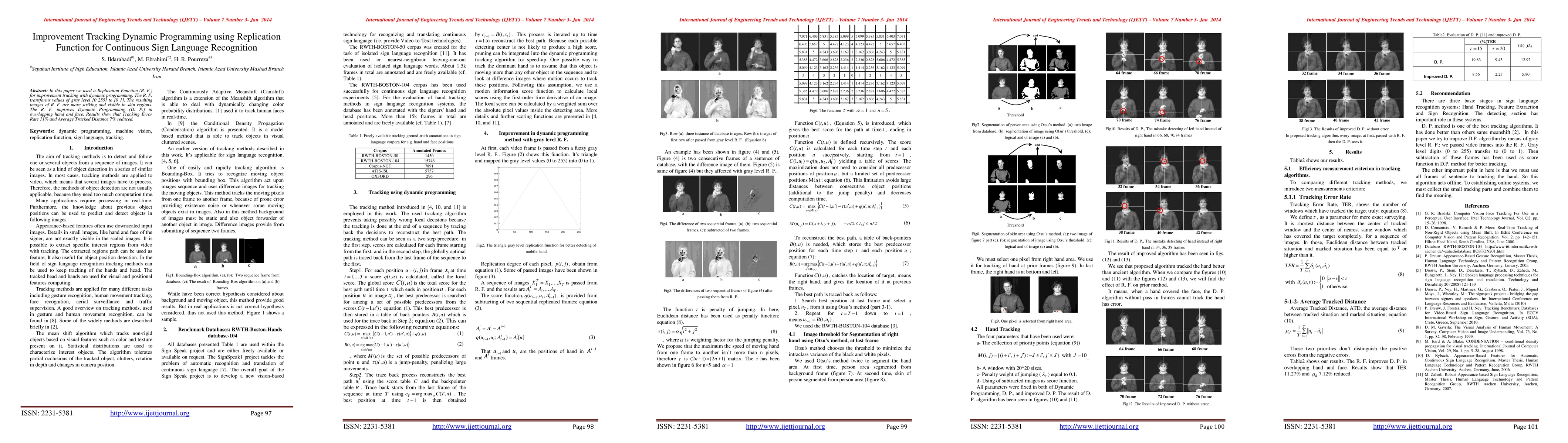 In this paper we used a Replication Function (R. F.)for improvement tracking with dynamic programming. The R. F. transforms values of gray level [0 255] to [0 1]. The resulting images of R. F. are more striking and visible in skin regions. The R. F. improves Dynamic Programming (D. P.) in overlapping hand and face. Results show that Tracking Error Rate 11% and Average Tracked Distance 7% reduced