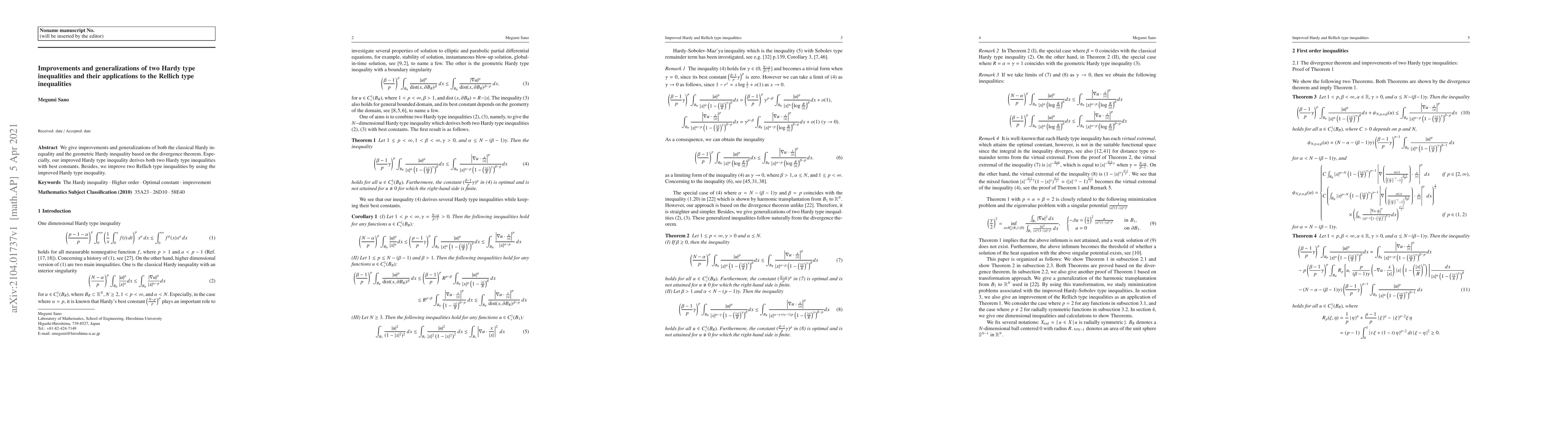 We give improvements and generalizations of both the classical Hardy inequality and the geometric Hardy inequality based on the divergence theorem. Especially, our improved Hardy type inequality derives both two Hardy type inequalities with best constants. Besides, we improve two Rellich type inequalities by using the improved Hardy type inequality.