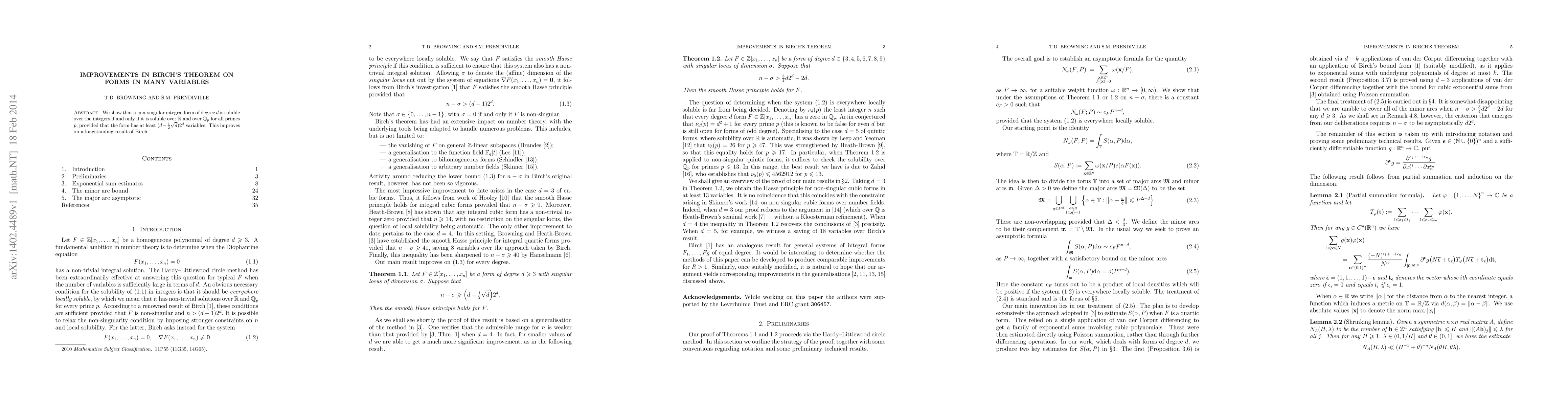 A recent research paper improves upon Birch's theorem on integral forms in many variables, showing that solvability over integers depends only on solvability over reals and p-adic numbers with a certain number of variables.
