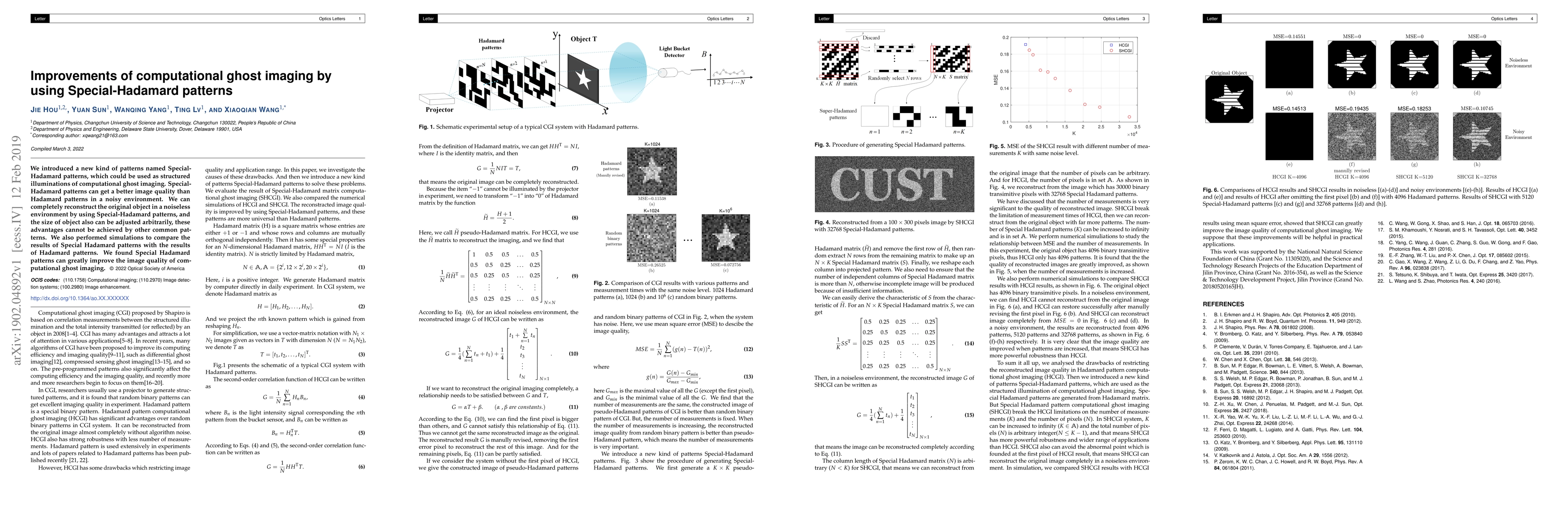 This paper introduces Special-Hadamard patterns for computational ghost imaging, demonstrating improved image quality over traditional Hadamard patterns, especially in noisy environments. Simulations show that Special-Hadamard patterns enable better reconstruction and arbitrary size adjustment of objects.