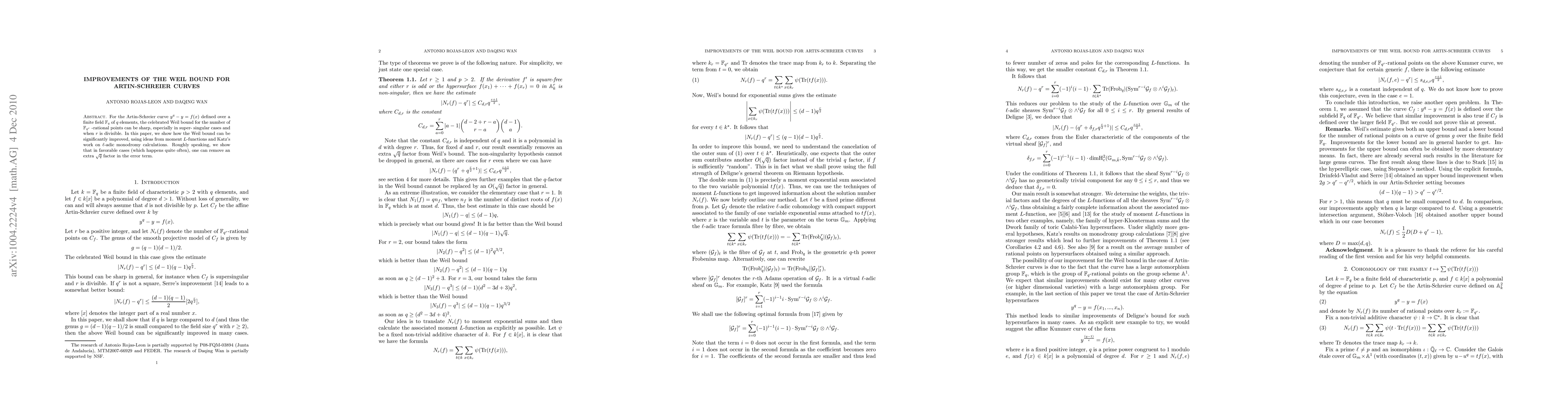 The research demonstrates significant improvements to the Weil bound for Artin-Schreier curves, effectively reducing the error term by removing an additional factor of approximately the square root of the field size over extension fields of F_q.