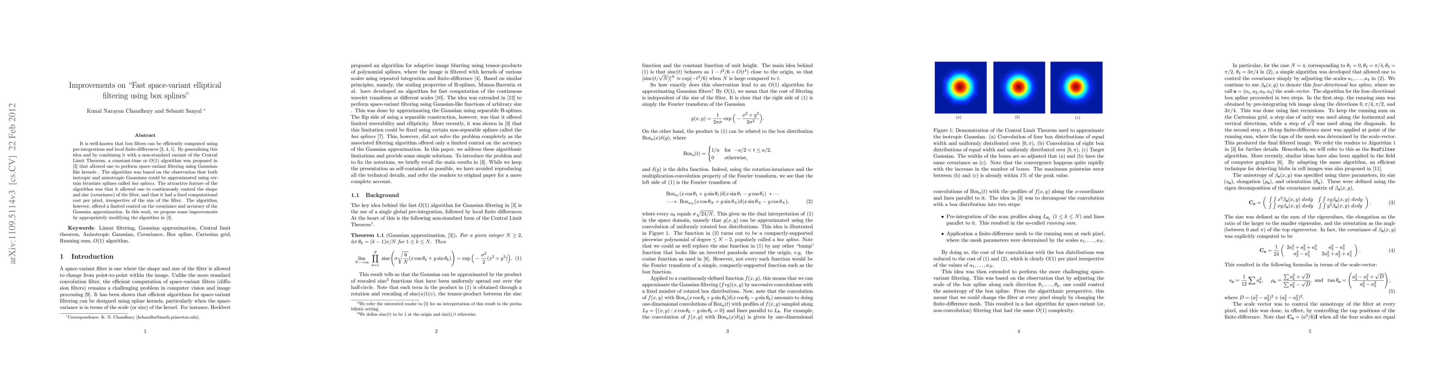 It is well-known that box filters can be efficiently computed using pre-integrations and local finite-differences [Crow1984,Heckbert1986,Viola2001]. By generalizing this idea and by combining it with a non-standard variant of the Central Limit Theorem, a constant-time or O(1) algorithm was proposed in [Chaudhury2010] that allowed one to perform space-variant filtering using Gaussian-like kernels. The algorithm was based on the observation that both isotropic and anisotropic Gaussians could be approximated using certain bivariate splines called box splines. The attractive feature of the algorithm was that it allowed one to continuously control the shape and size (covariance) of the filter, and that it had a fixed computational cost per pixel, irrespective of the size of the filter. The algorithm, however, offered a limited control on the covariance and accuracy of the Gaussian approximation. In this work, we propose some improvements by appropriately modifying the algorithm in [Chaudhury2010].