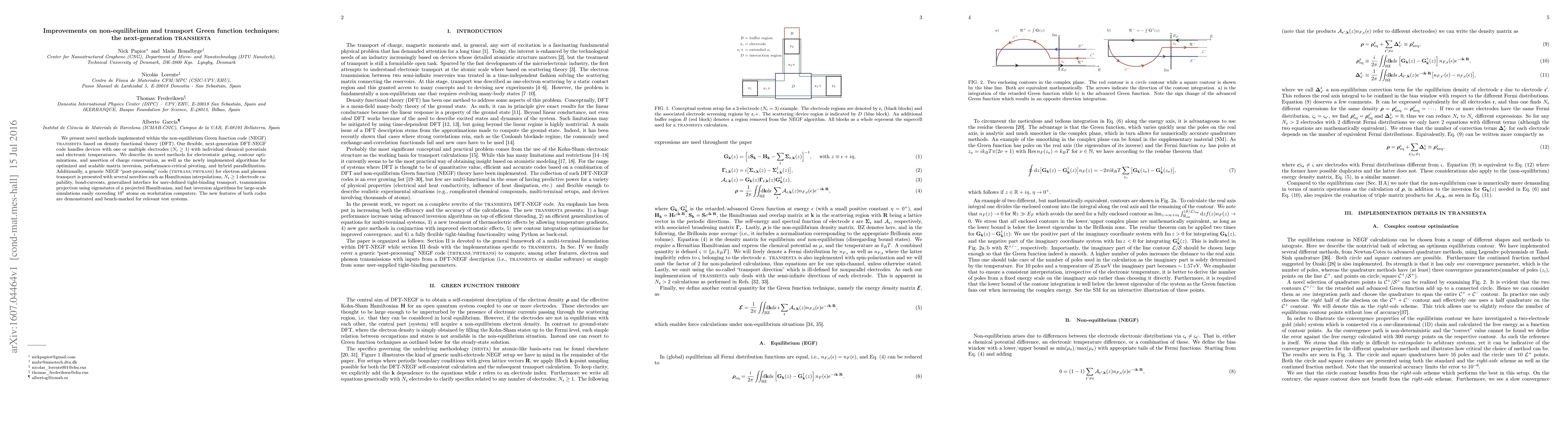 We present novel methods implemented within the non-equilibrium Green function code (NEGF) transiesta based on density functional theory (DFT). Our flexible, next-generation DFT-NEGF code handles devices with one or multiple electrodes ($N_e\ge1$) with individual chemical potentials and electronic temperatures. We describe its novel methods for electrostatic gating, contour opti- mizations, and assertion of charge conservation, as well as the newly implemented algorithms for optimized and scalable matrix inversion, performance-critical pivoting, and hybrid parallellization. Additionally, a generic NEGF post-processing code (tbtrans/phtrans) for electron and phonon transport is presented with several novelties such as Hamiltonian interpolations, $N_e\ge1$ electrode capability, bond-currents, generalized interface for user-defined tight-binding transport, transmission projection using eigenstates of a projected Hamiltonian, and fast inversion algorithms for large-scale simulations easily exceeding $10^6$ atoms on workstation computers. The new features of both codes are demonstrated and bench-marked for relevant test systems.