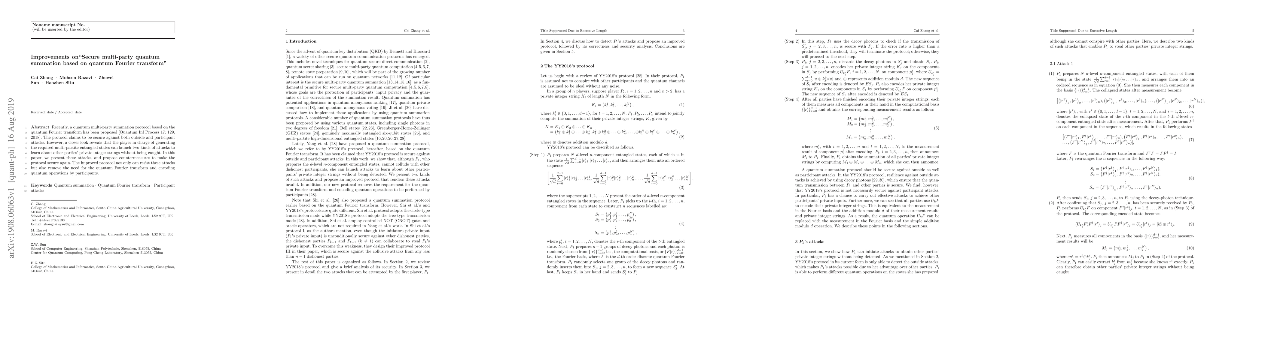 This paper identifies vulnerabilities in a previously proposed secure multi-party quantum summation protocol based on the quantum Fourier transform, detailing two attacks by the state generator. It proposes enhanced countermeasures to secure the protocol, eliminating the need for quantum Fourier transform and encoding operations by participants.