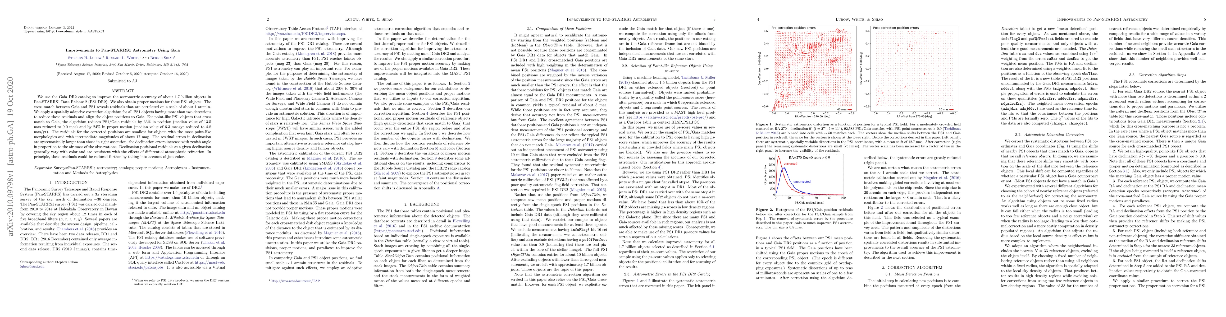 This paper improves the astrometric accuracy of Pan-STARRS1 (PS1 DR2) data using the Gaia DR2 catalog, reducing astrometric residuals by 33% in position and 24% in proper motion. The study also identifies systematic errors in declination related to atmospheric refraction and air mass.