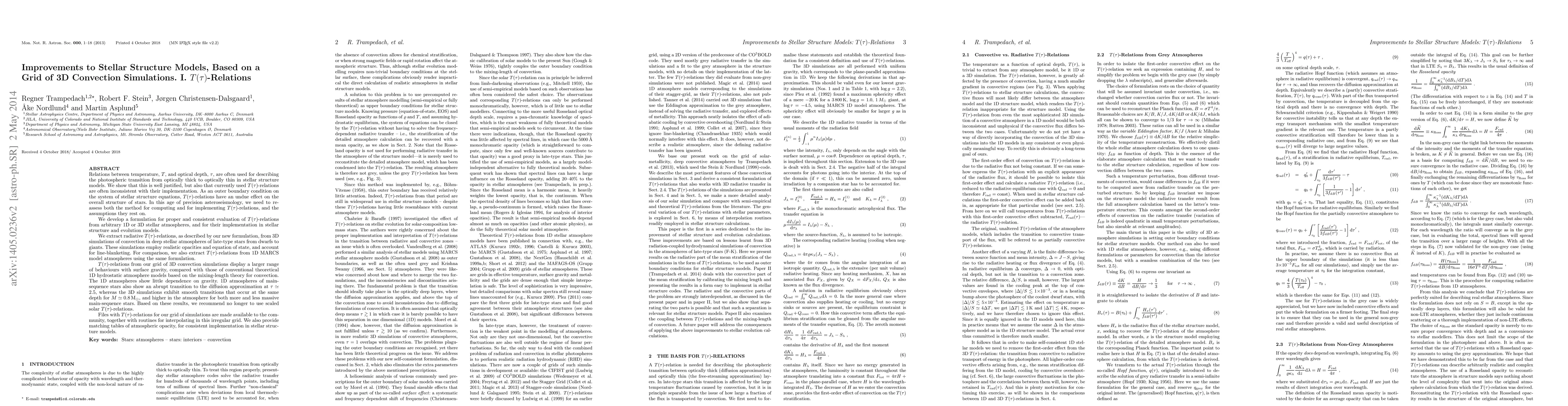 This paper develops improved T(τ) relations for stellar structure models based on 3D convection simulations, revealing inconsistencies in current implementations. It recommends using new T(τ) relations derived from 3D simulations over conventional 1D models, providing the community with files and routines for their implementation.