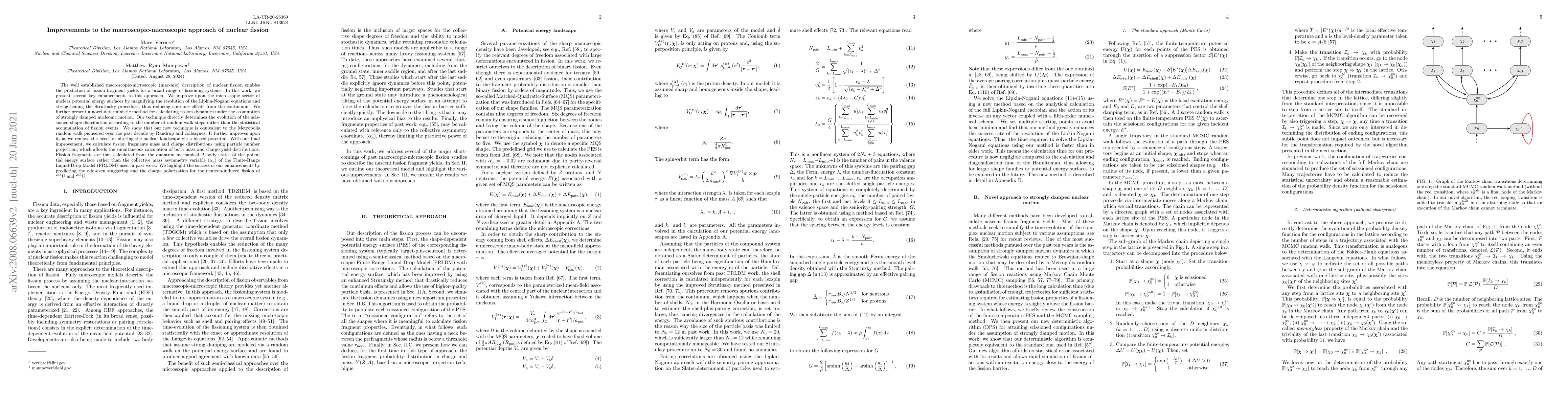 This paper enhances the macroscopic-microscopic approach for nuclear fission, improving the microscopic sector by refining the Lipkin-Nogami equations and Strutinsky procedure, and introduces a novel deterministic method for fission dynamics. The new technique calculates fission fragments' mass and charge distributions directly from quantum mechanical states, predicting odd-even staggering and charge polarization in neutron-induced fission of ${}^{233}$U and ${}^{235}$U.