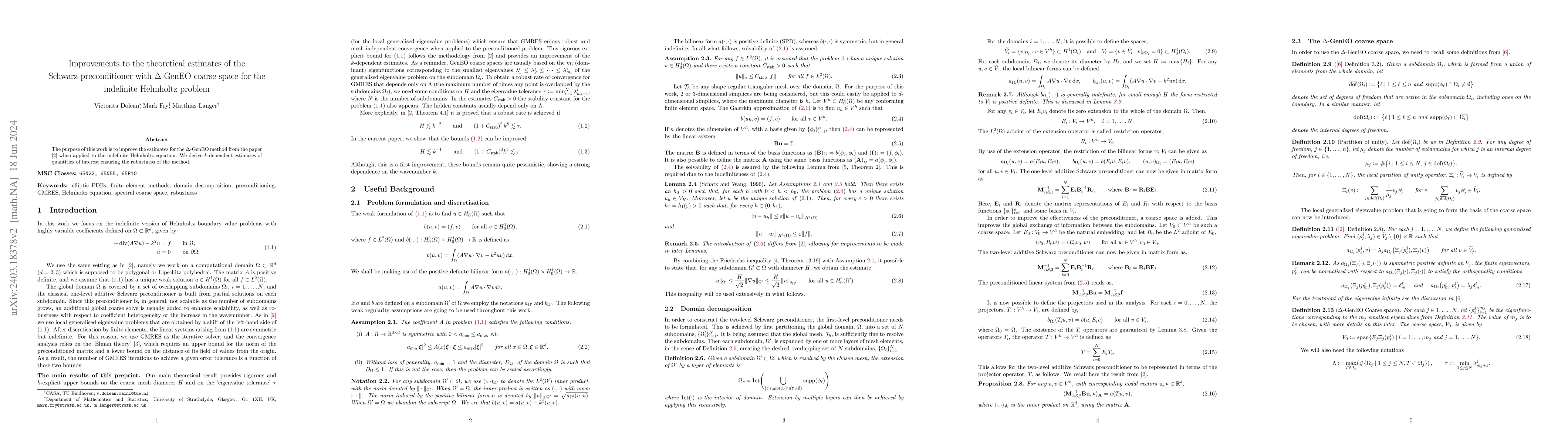 This paper enhances theoretical estimates for the Schwarz preconditioner using $\Delta$-GenEO coarse spaces for the indefinite Helmholtz equation, deriving k-dependent estimates to ensure method robustness, building on prior work by Bootland et al.