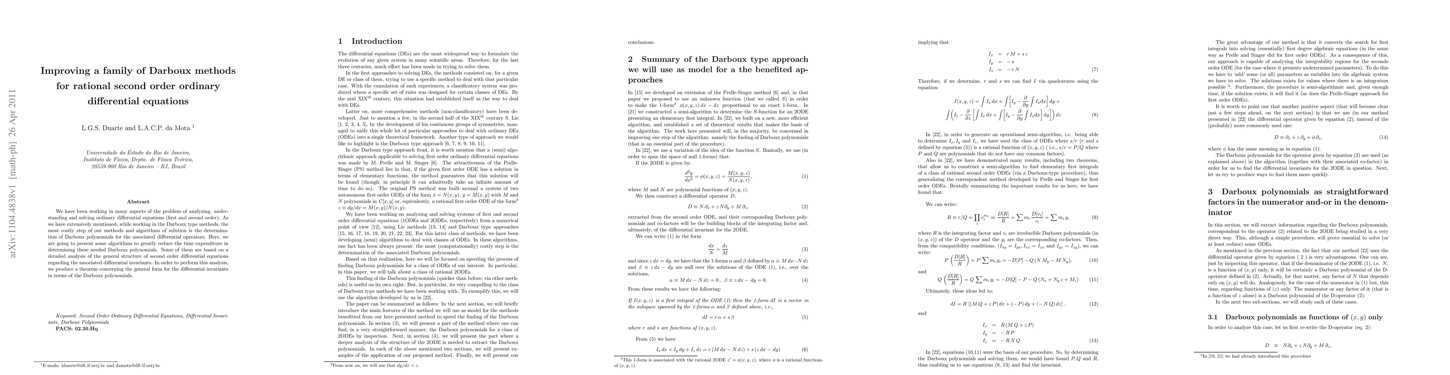 This paper introduces new algorithms to efficiently determine Darboux polynomials in Darboux methods for solving rational second-order ordinary differential equations, significantly reducing computational time. The approach leverages a detailed analysis of the structure and invariants of these equations.