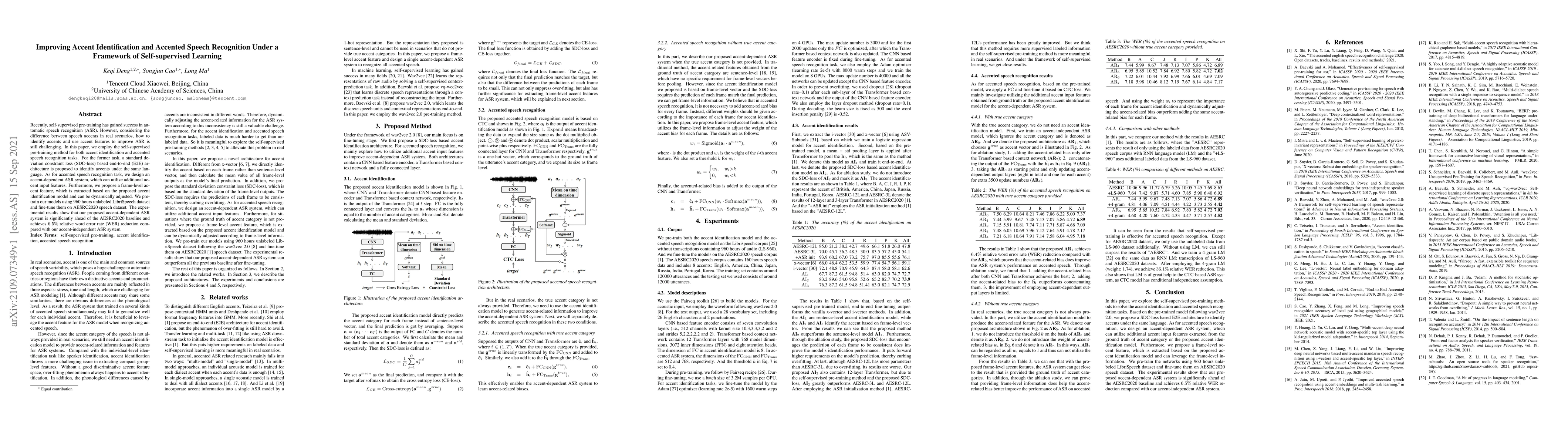 This paper proposes a self-supervised learning framework for accent identification and accented speech recognition, achieving a 6.5% relative reduction in word error rate compared to an accent-independent system. The approach includes a standard deviation constraint loss for accent identification and an accent-dependent ASR system utilizing dynamic accent features.