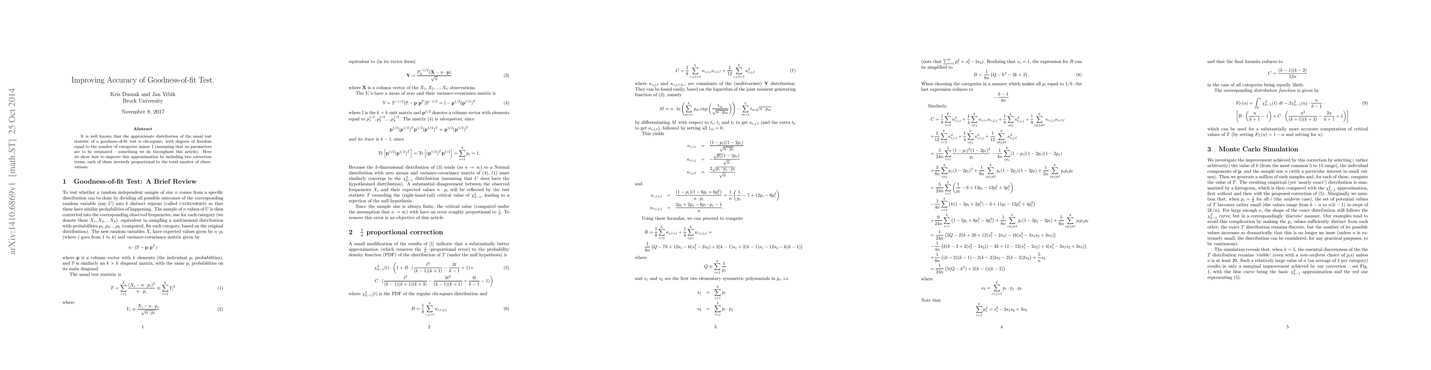 This work distinguishes itself from existing research by providing a more accurate approximation for the goodness-of-fit test statistic's distribution, especially for smaller sample sizes and non-uniform category probabilities. The proposed correction terms, B and C, offer a technical advancement in statistical inference, addressing a long-standing limitation of the traditional chi-square approximation.