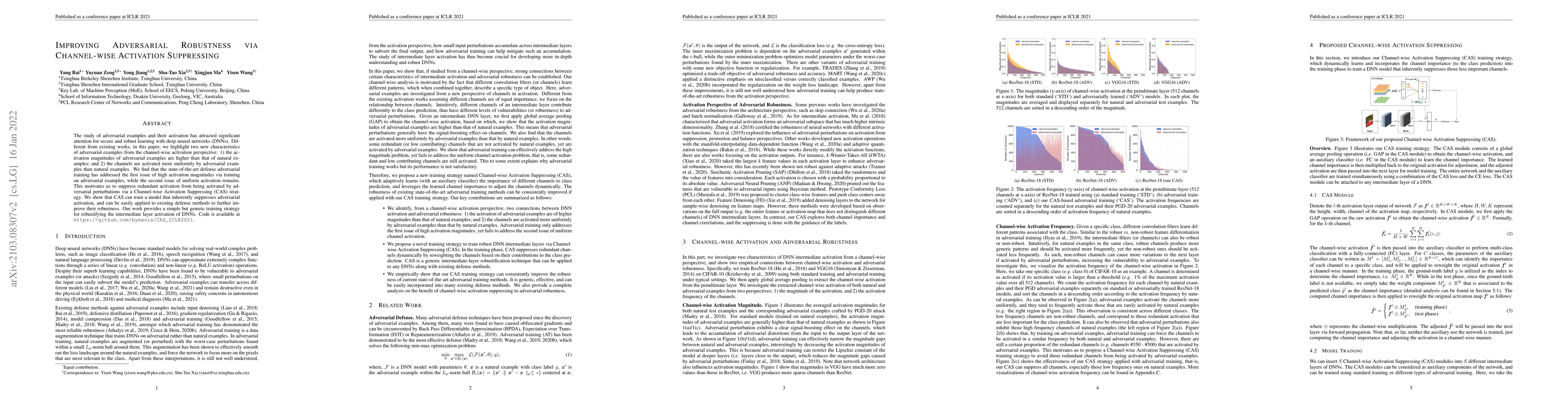 This paper introduces a Channel-wise Activation Suppressing (CAS) strategy to improve adversarial robustness in DNNs by addressing the uniform channel activation issue caused by adversarial examples. CAS aims to suppress redundant activations, enhancing existing defense methods and providing a generic training approach for robustifying DNNs.