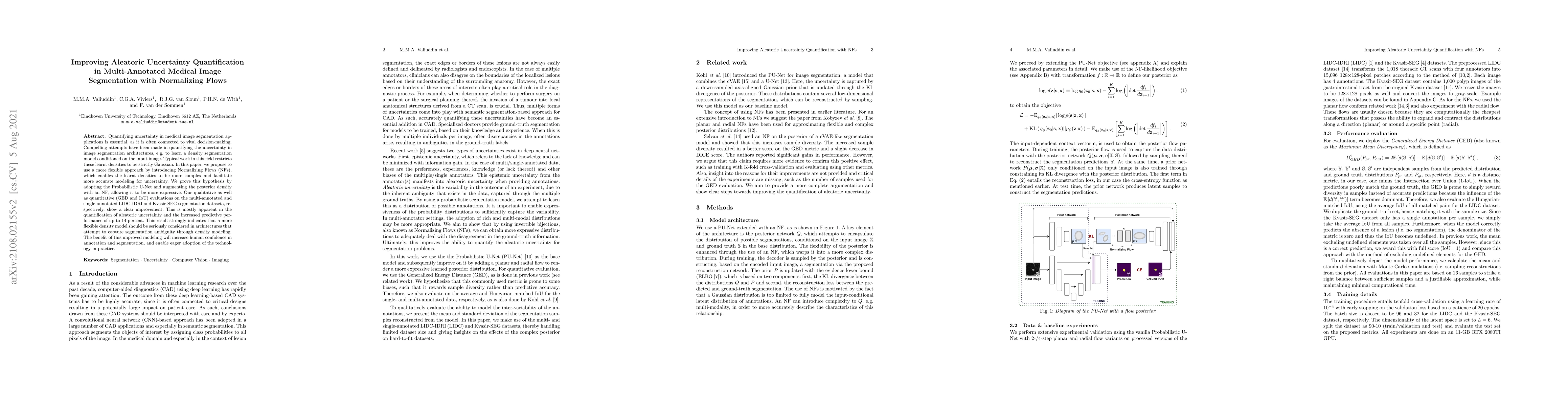This paper proposes using Normalizing Flows to improve aleatoric uncertainty quantification in medical image segmentation, demonstrating enhanced accuracy and performance over Gaussian models. The Probabilistic U-Net augmented with NFs shows significant improvements in uncertainty quantification and predictive performance, suggesting a more flexible density model is beneficial for segmentation tasks.