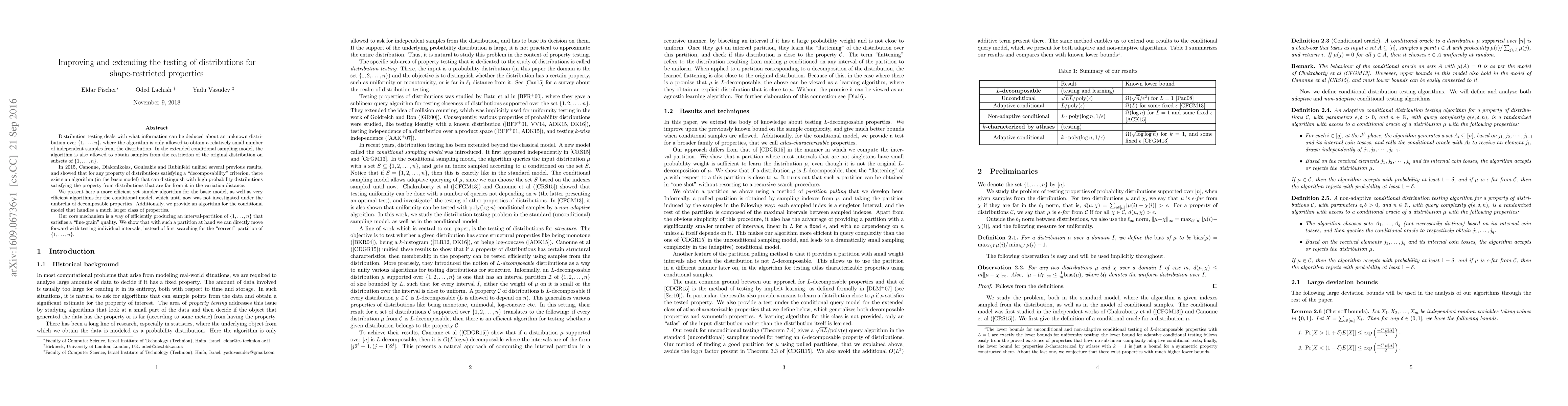 Distribution testing deals with what information can be deduced about an unknown distribution over $\{1,\ldots,n\}$, where the algorithm is only allowed to obtain a relatively small number of independent samples from the distribution. In the extended conditional sampling model, the algorithm is also allowed to obtain samples from the restriction of the original distribution on subsets of $\{1,\ldots,n\}$. In 2015, Canonne, Diakonikolas, Gouleakis and Rubinfeld unified several previous results, and showed that for any property of distributions satisfying a "decomposability" criterion, there exists an algorithm (in the basic model) that can distinguish with high probability distributions satisfying the property from distributions that are far from it in the variation distance. We present here a more efficient yet simpler algorithm for the basic model, as well as very efficient algorithms for the conditional model, which until now was not investigated under the umbrella of decomposable properties. Additionally, we provide an algorithm for the conditional model that handles a much larger class of properties. Our core mechanism is a way of efficiently producing an interval-partition of $\{1,\ldots,n\}$ that satisfies a "fine-grain" quality. We show that with such a partition at hand we can directly move forward with testing individual intervals, instead of first searching for the "correct" partition of $\{1,\ldots,n\}$.