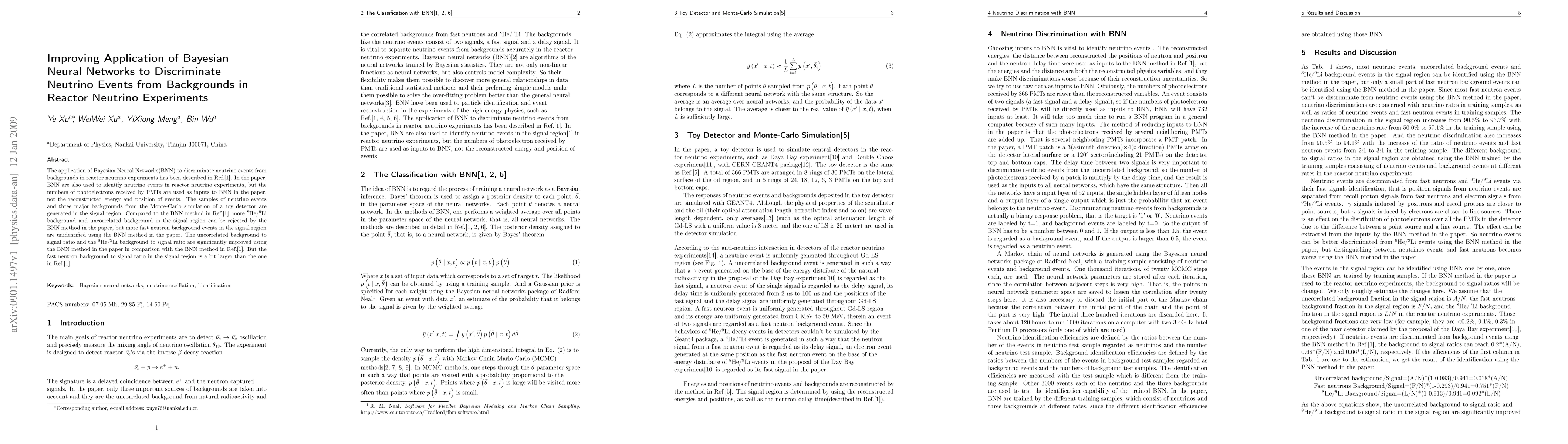 The application of Bayesian Neural Networks(BNN) to discriminate neutrino events from backgrounds in reactor neutrino experiments has been described in Ref.\cite{key-1}. In the paper, BNN are also used to identify neutrino events in reactor neutrino experiments, but the numbers of photoelectrons received by PMTs are used as inputs to BNN in the paper, not the reconstructed energy and position of events. The samples of neutrino events and three major backgrounds from the Monte-Carlo simulation of a toy detector are generated in the signal region. Compared to the BNN method in Ref.\cite{key-1}, more $^{8}$He/$^{9}$Li background and uncorrelated background in the signal region can be rejected by the BNN method in the paper, but more fast neutron background events in the signal region are unidentified using the BNN method in the paper. The uncorrelated background to signal ratio and the $^{8}$He/$^{9}$Li background to signal ratio are significantly improved using the BNN method in the paper in comparison with the BNN method in Ref.\cite{key-1}. But the fast neutron background to signal ratio in the signal region is a bit larger than the one in Ref.\cite{key-1}.
