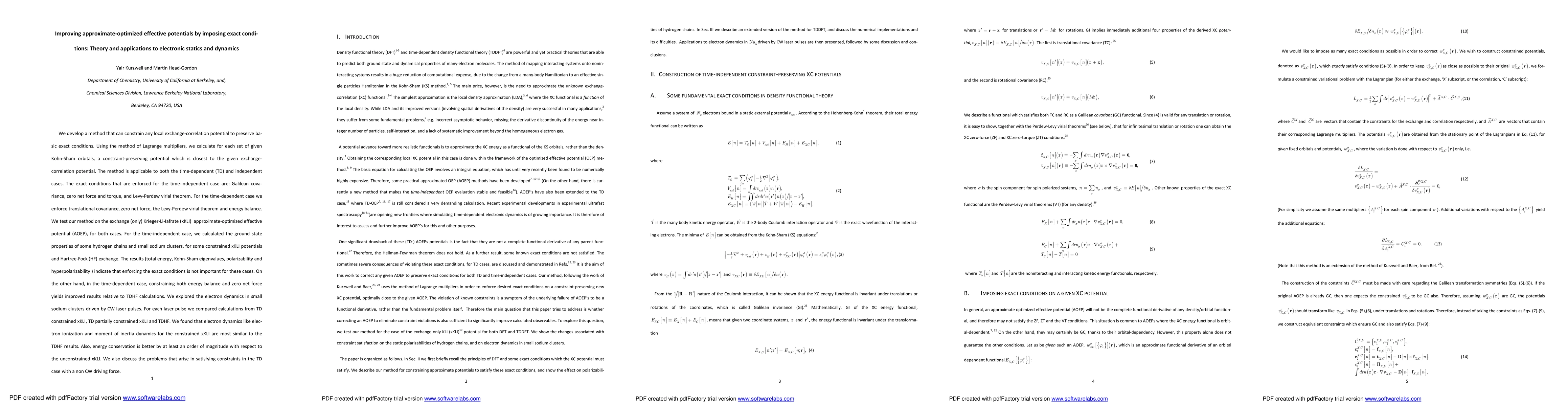 We develop a method that can constrain any local exchange-correlation potential to preserve ba-sic exact conditions. Using the method of Lagrange multipliers, we calculate for each set of given Kohn-Sham orbitals, a constraint-preserving potential which is closest to the given exchange-correlation potential. The method is applicable to both the time-dependent (TD) and independent cases. The exact conditions that are enforced for the time-independent case are: Galilean covariance, zero net force and torque, and Levy-Perdew virial theorem. For the TD case we enforce translational covariance, zero net force, the Levy-Perdew virial theorem and energy balance. We test our method on the exchange Krieger-Li-Iafrate (xKLI) approximate-optimized effective potential (AOEP), for both cases. For the time-independent case, we calculated the ground state properties of some hydrogen chains and small sodium clusters, for some constrained xKLI potentials and Hartree-Fock (HF) exchange. The results indicate that enforcing the exact conditions is not important for these cases. On the other hand, in the case, constraining both energy balance and zero net force yields improved results relative to TDHF calculations. We explored the electron dynamics in small sodium clusters driven by CW laser pulses. For each laser pulse we compared calculations from TD constrained xKLI, TD partially constrained xKLI and TDHF. We found that electron dynamics like elec-tron ionization and moment of inertia dynamics for the constrained xKLI are most similar to the TDHF results. Also, energy conservation is better by at least an order of magnitude with respect to the unconstrained xKLI. We also discuss the problems that arise in satisfying constraints in the TD case with a non CW driving force.