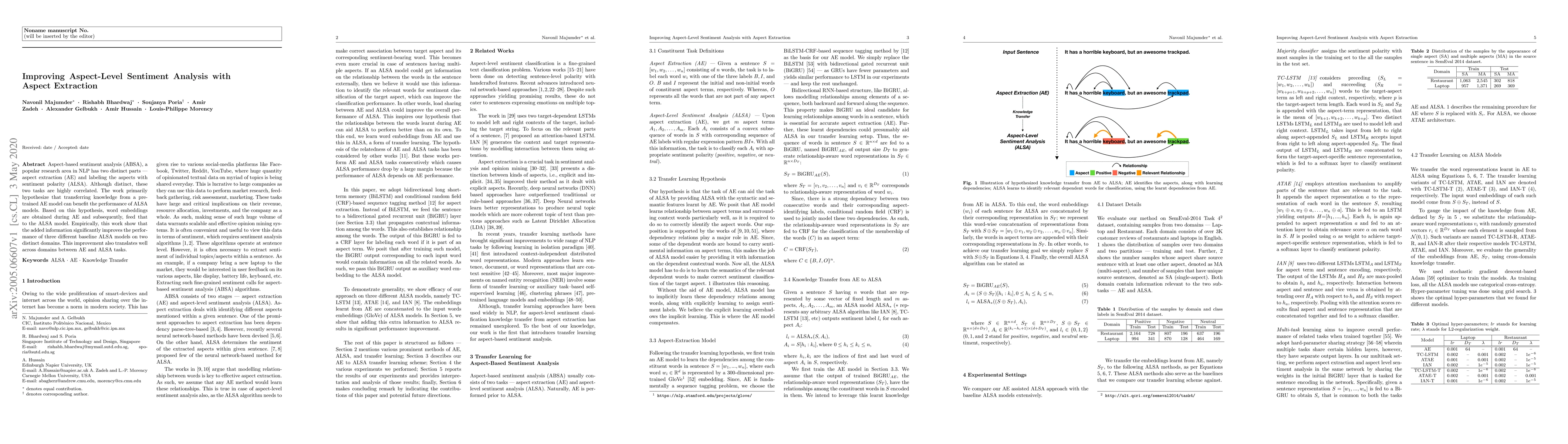 This paper explores how transferring knowledge from an aspect extraction model to an aspect-level sentiment analysis model enhances performance. The use of word embeddings from the extraction phase significantly improves the sentiment analysis across different baselines and domains.