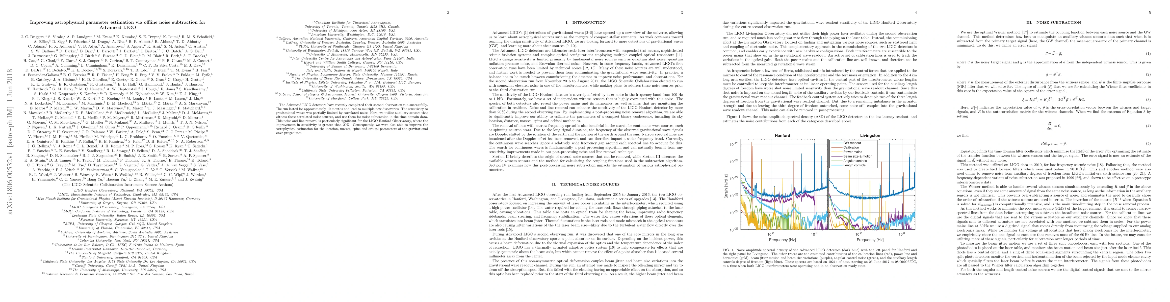 This paper details the use of auxiliary sensors to perform offline noise subtraction in Advanced LIGO data, significantly enhancing the sensitivity of the LIGO Hanford Observatory by over 20%. This improvement has led to better estimations of astrophysical parameters for gravitational wave sources.