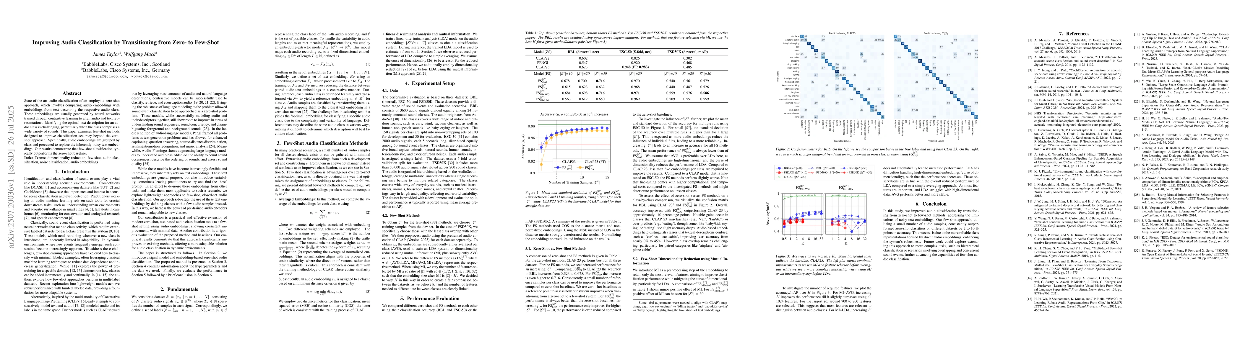 State-of-the-art audio classification often employs a zero-shot approach, which involves comparing audio embeddings with embeddings from text describing the respective audio class. These embeddings are usually generated by neural networks trained through contrastive learning to align audio and text representations. Identifying the optimal text description for an audio class is challenging, particularly when the class comprises a wide variety of sounds. This paper examines few-shot methods designed to improve classification accuracy beyond the zero-shot approach. Specifically, audio embeddings are grouped by class and processed to replace the inherently noisy text embeddings. Our results demonstrate that few-shot classification typically outperforms the zero-shot baseline.