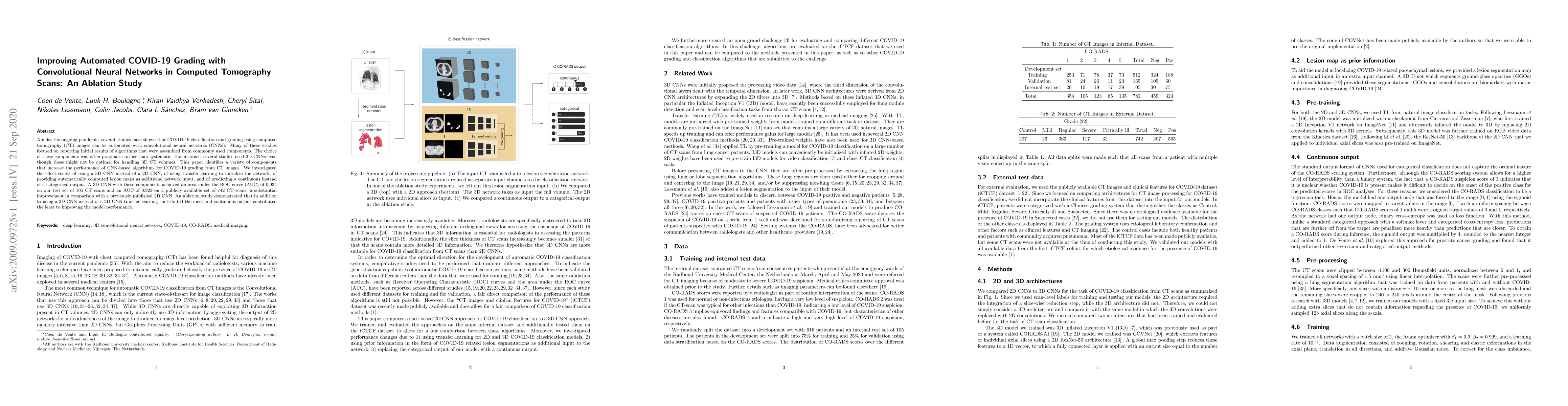 This research explores the enhancement of automated COVID-19 grading using convolutional neural networks (CNNs) in computed tomography (CT) scans. The study demonstrates that a 3D CNN with specific components like transfer learning and lesion maps significantly improves performance compared to 2D CNNs, achieving notable AUC scores on both test and public datasets.