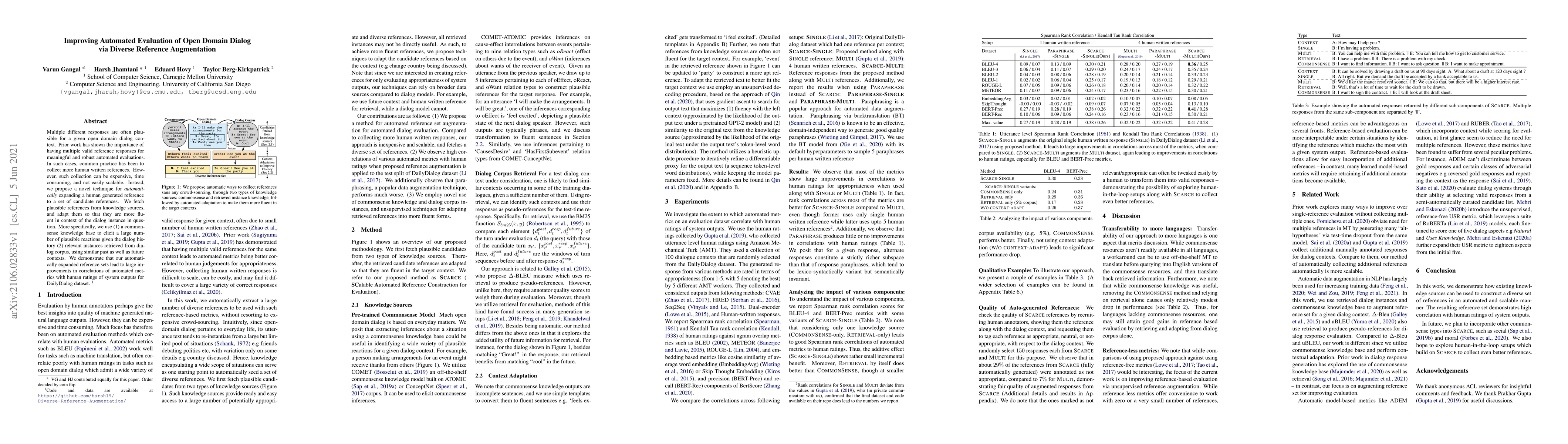 This research introduces a method to automatically generate diverse reference responses for open domain dialog evaluation, using commonsense knowledge bases and dialog corpus instances. The approach significantly improves correlation between automated metrics and human ratings on the DailyDialog dataset.