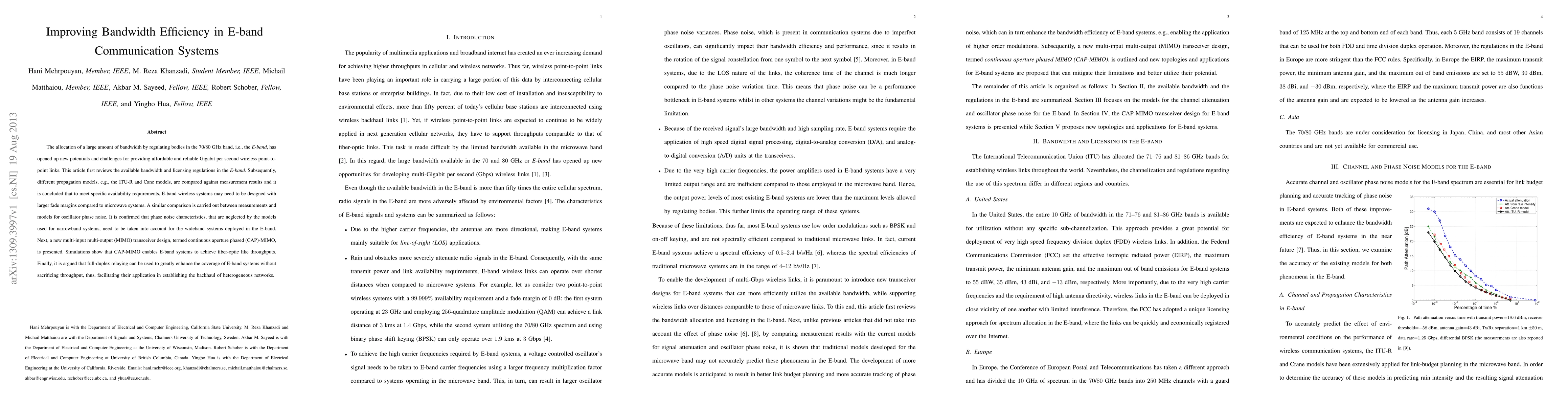 This paper reviews the E-band's potential for high-speed wireless communication, highlighting the need for larger fade margins and consideration of phase noise for reliable links. It introduces a new CAP-MIMO transceiver design that achieves high throughput and proposes full-duplex relaying to enhance coverage, supporting E-band's role in next-gen backhaul networks.