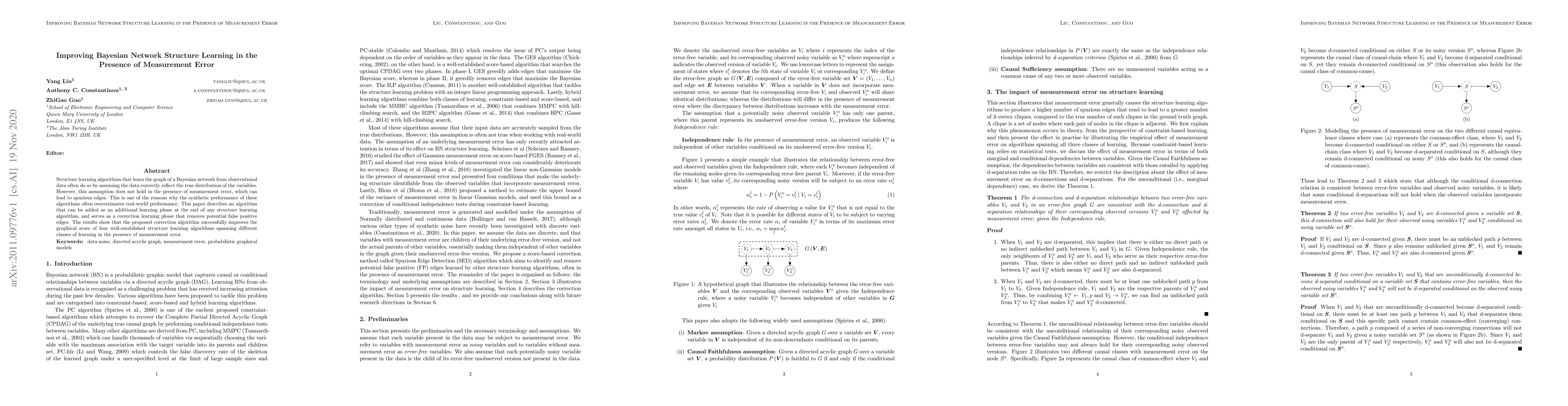 A new algorithm improves Bayesian network structure learning accuracy in the presence of measurement error by correcting false positive edges, enhancing real-world performance beyond synthetic estimates.