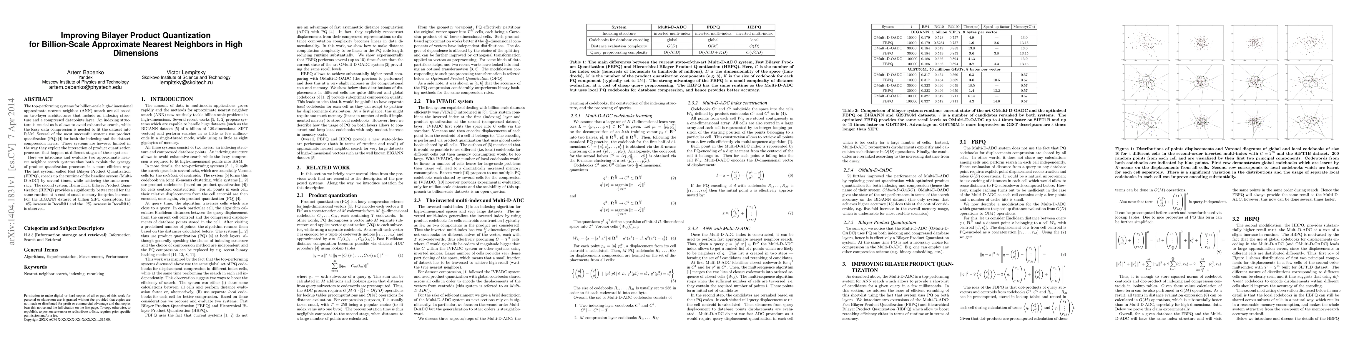 The top-performing systems for billion-scale high-dimensional approximate nearest neighbor (ANN) search are all based on two-layer architectures that include an indexing structure and a compressed datapoints layer. An indexing structure is crucial as it allows to avoid exhaustive search, while the lossy data compression is needed to fit the dataset into RAM. Several of the most successful systems use product quantization (PQ) for both the indexing and the dataset compression layers. These systems are however limited in the way they exploit the interaction of product quantization processes that happen at different stages of these systems. Here we introduce and evaluate two approximate nearest neighbor search systems that both exploit the synergy of product quantization processes in a more efficient way. The first system, called Fast Bilayer Product Quantization (FBPQ), speeds up the runtime of the baseline system (Multi-D-ADC) by several times, while achieving the same accuracy. The second system, Hierarchical Bilayer Product Quantization (HBPQ) provides a significantly better recall for the same runtime at a cost of small memory footprint increase. For the BIGANN dataset of billion SIFT descriptors, the 10% increase in Recall@1 and the 17% increase in Recall@10 is observed.