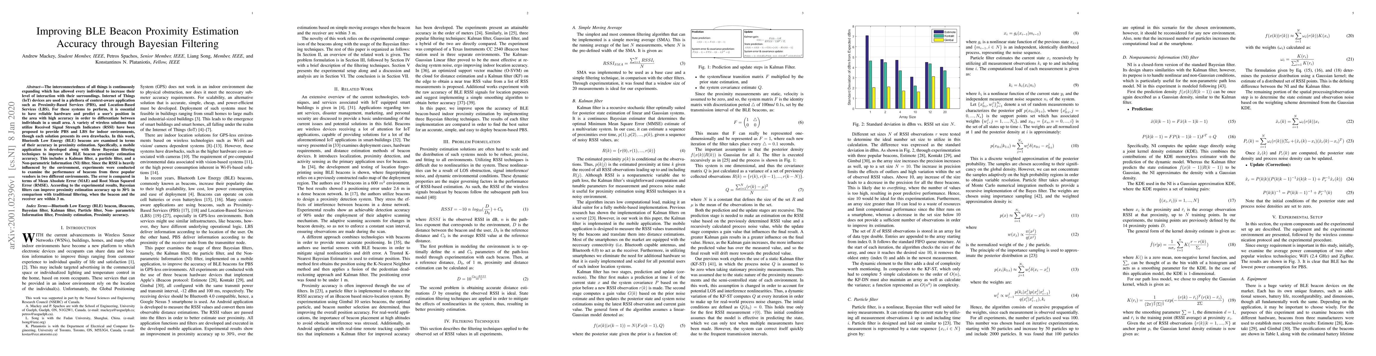 This paper develops a mobile application using three Bayesian filtering techniques—Kalman, particle, and Non-parametric Information filters—to enhance the accuracy of Bluetooth Low Energy (BLE) beacon proximity estimation. Experimental results show that Bayesian filtering can improve accuracy by up to 30% compared to traditional methods, especially within 3 meters.