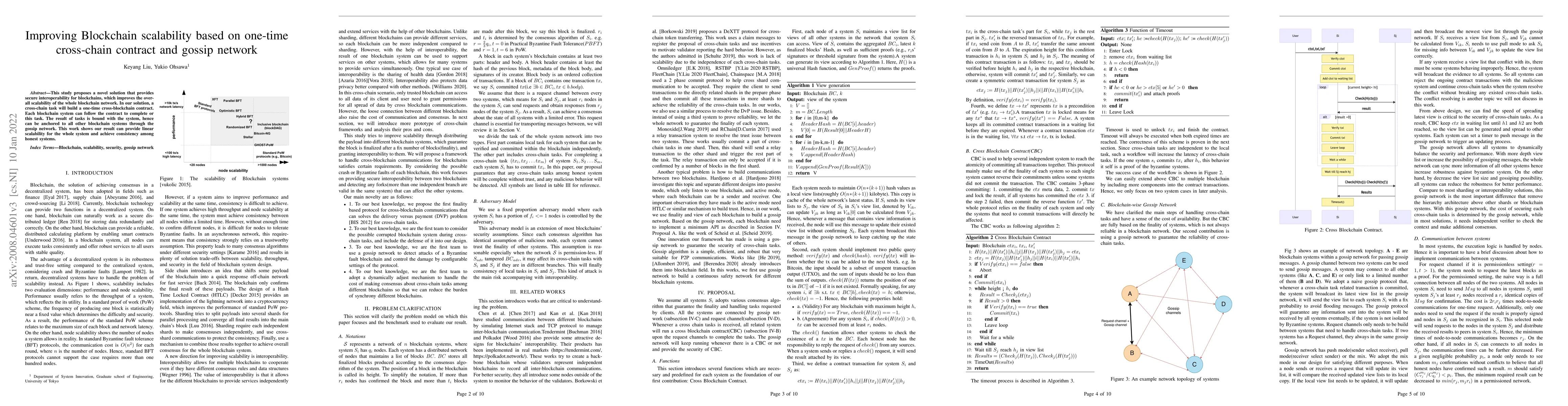 This paper introduces a novel solution to enhance blockchain scalability through secure interoperability using one-time cross-chain contracts and a gossip network, achieving linear scalability and consistency across honest systems.
