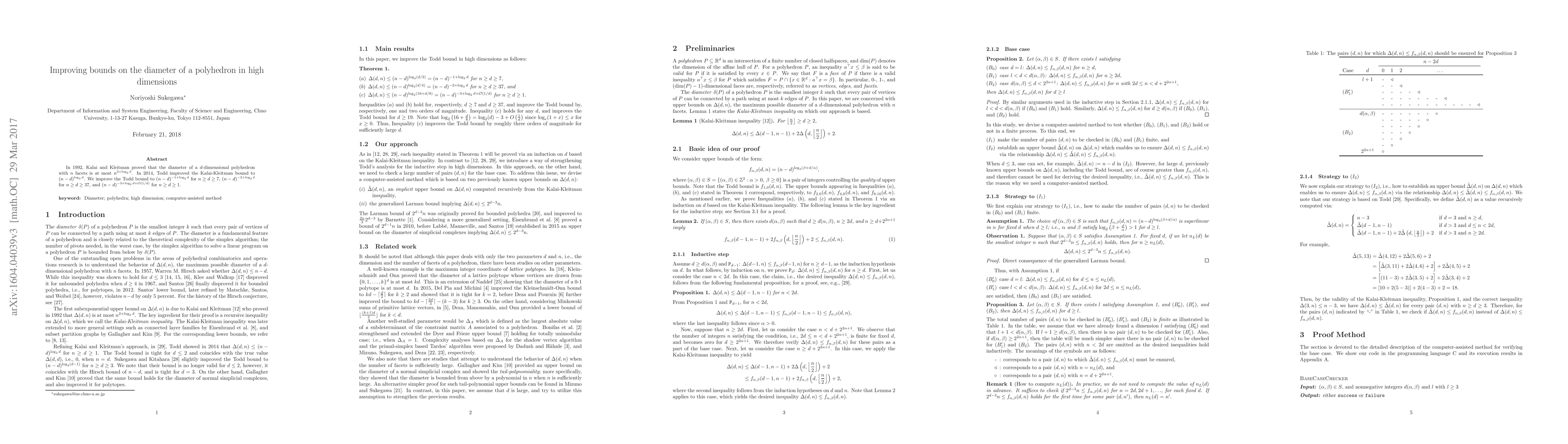 This paper refines the upper bounds on the diameter of high-dimensional polyhedra, improving upon Todd's 2014 results with new bounds for various ranges of $n$ and $d$. The best bound achieved is $(n-d)^{-3+\log_2 d+O\left(1/d\right)}$ for $n \ge d \ge 1$.