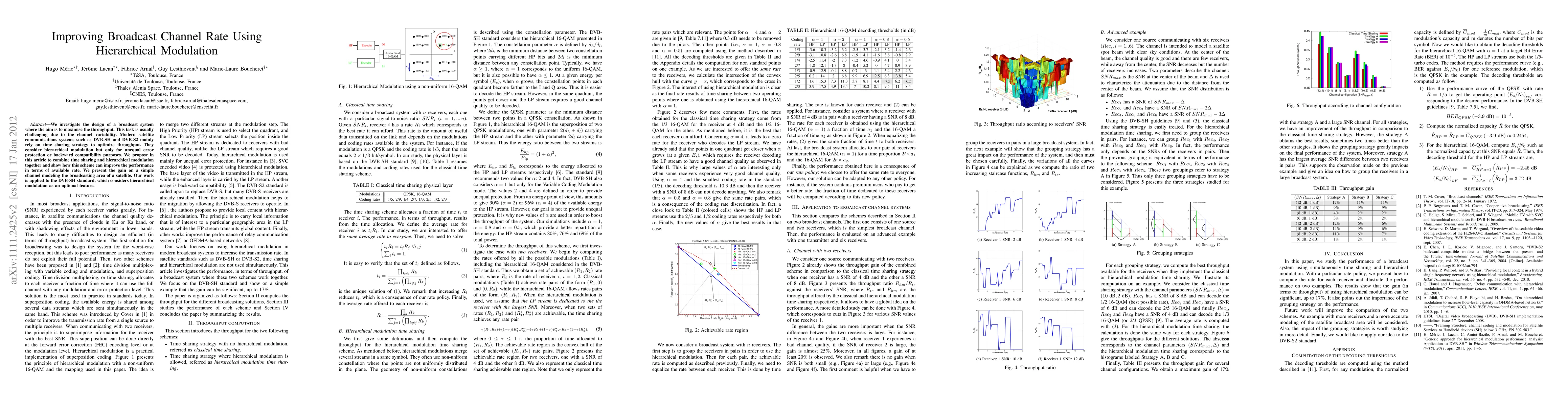 A new broadcast system is proposed that combines time sharing with hierarchical modulation to improve throughput in satellite communications, outperforming existing standards like DVB-SH.