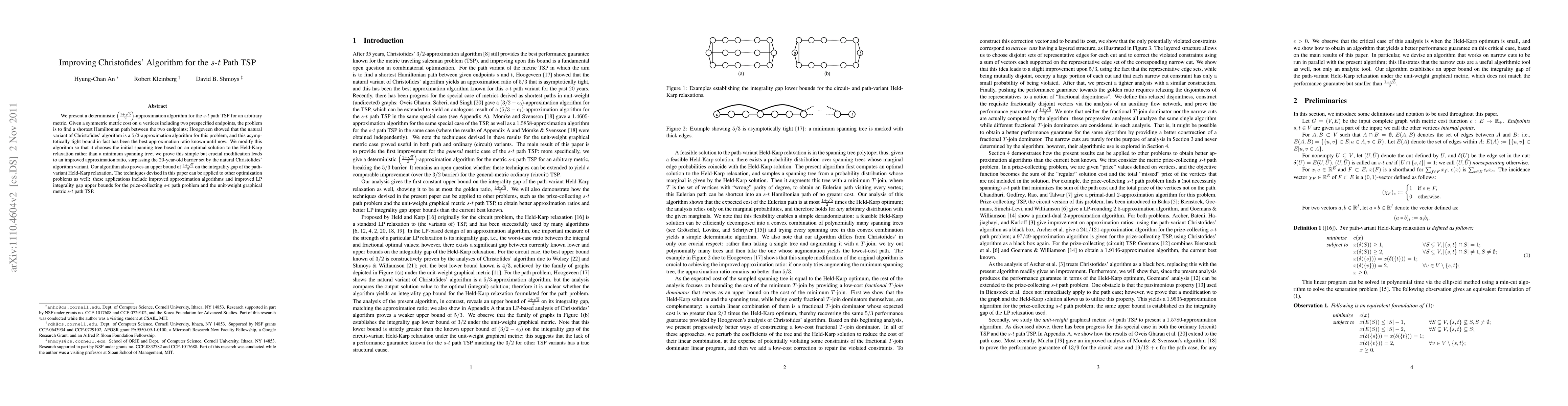 This paper presents a deterministic (1+sqrt(5))/2-approximation algorithm for the s-t path TSP, improving upon the previous best 5/3-approximation by modifying Christofides' algorithm to use the Held-Karp relaxation for the initial spanning tree selection. The new algorithm also sets an upper bound for the integrality gap of the path-variant Held-Karp relaxation.