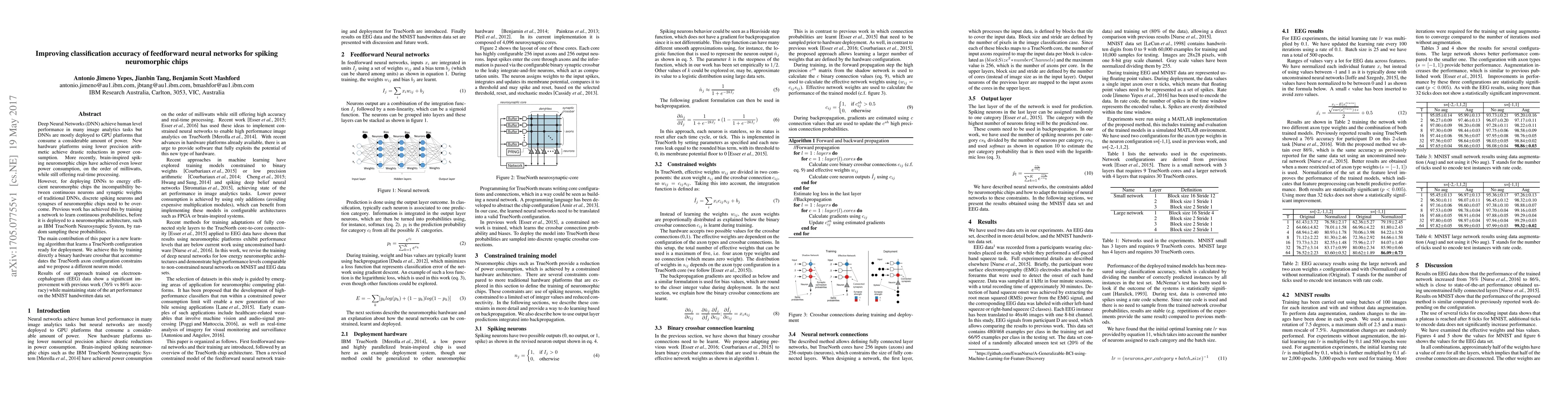 Researchers developed a new learning algorithm to improve classification accuracy of feedforward neural networks for energy-efficient neuromorphic chips, achieving 76% accuracy on EEG data and maintaining MNIST performance.