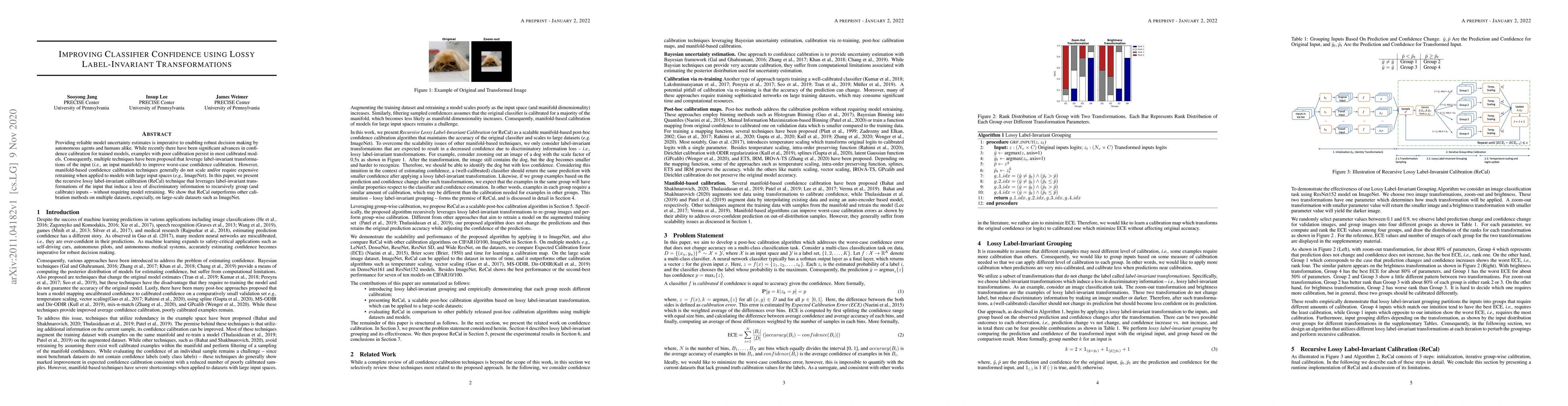 Providing reliable model uncertainty estimates is imperative to enabling robust decision making by autonomous agents and humans alike. While recently there have been significant advances in confidence calibration for trained models, examples with poor calibration persist in most calibrated models. Consequently, multiple techniques have been proposed that leverage label-invariant transformations of the input (i.e., an input manifold) to improve worst-case confidence calibration. However, manifold-based confidence calibration techniques generally do not scale and/or require expensive retraining when applied to models with large input spaces (e.g., ImageNet). In this paper, we present the recursive lossy label-invariant calibration (ReCal) technique that leverages label-invariant transformations of the input that induce a loss of discriminatory information to recursively group (and calibrate) inputs - without requiring model retraining. We show that ReCal outperforms other calibration methods on multiple datasets, especially, on large-scale datasets such as ImageNet.
