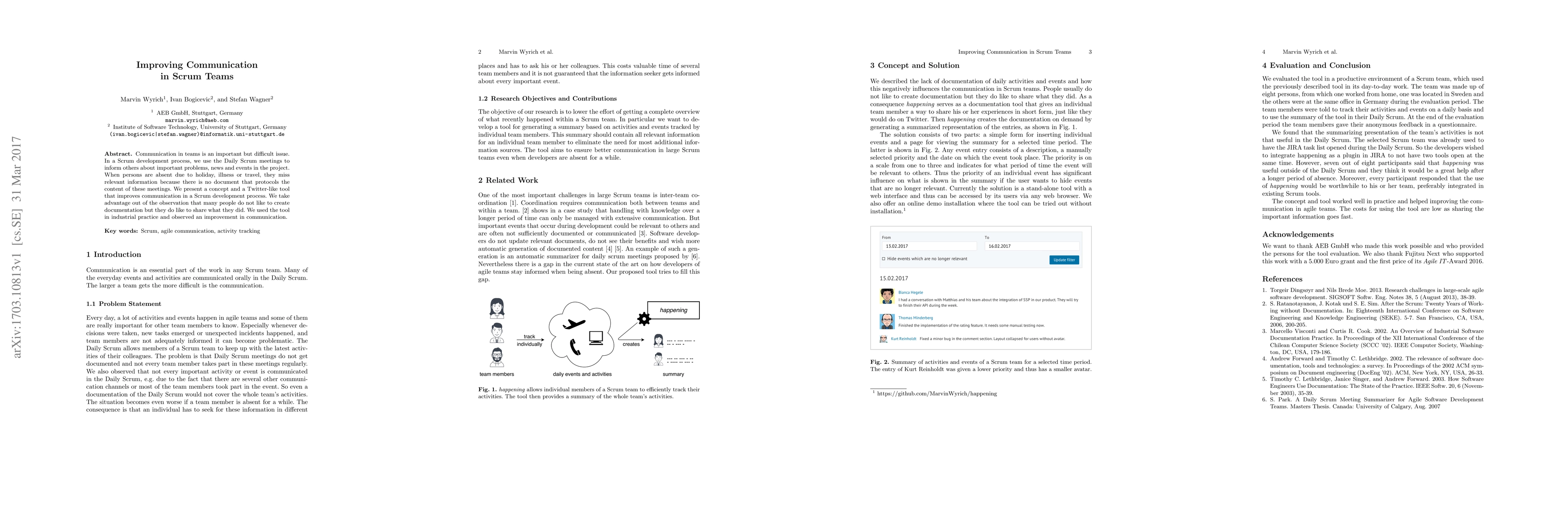 The tool capitalizes on the preference of team members to share experiences rather than create documentation, offering a novel approach to addressing communication gaps in Scrum teams.