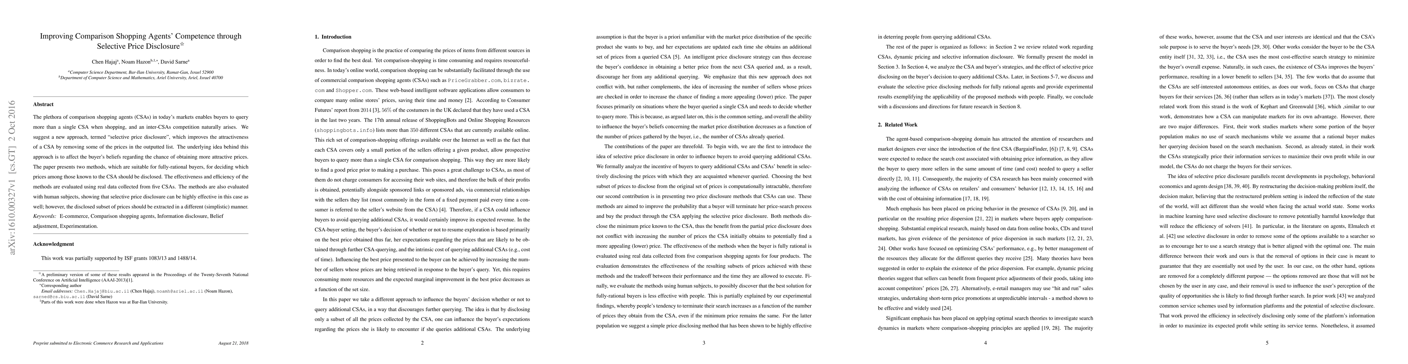 Researchers propose a method to improve comparison shopping agents' attractiveness by selectively disclosing prices, which can affect buyer perceptions of price likelihood, and find it effective with both real data and human subjects.