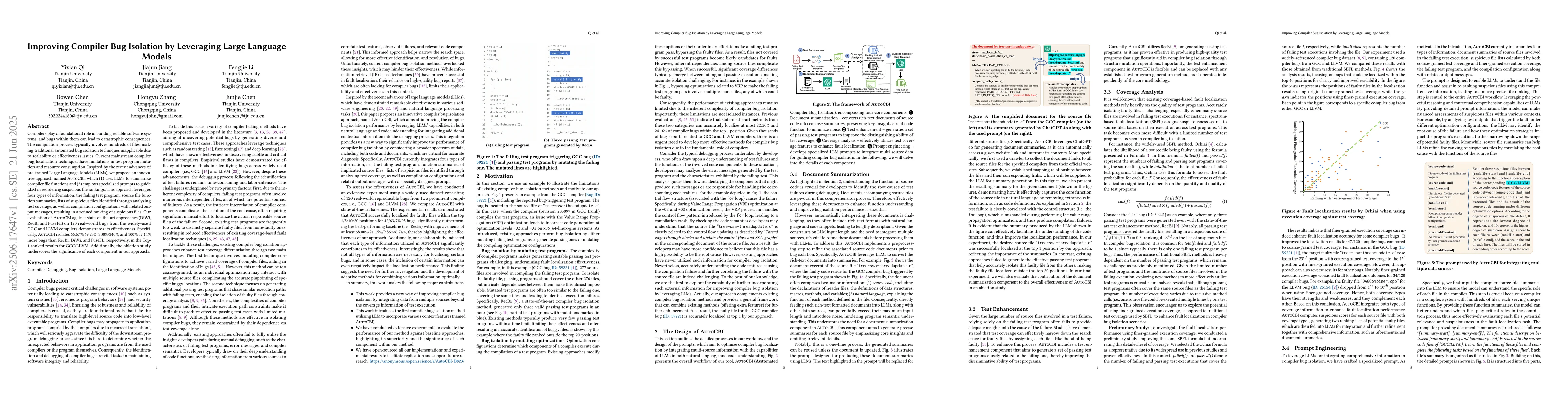 Compilers play a foundational role in building reliable software systems, and bugs within them can lead to catastrophic consequences. The compilation process typically involves hundreds of files, making traditional automated bug isolation techniques inapplicable due to scalability or effectiveness issues. Current mainstream compiler bug localization techniques have limitations in test program mutation and resource consumption. Inspired by the recent advances of pre-trained Large Language Models (LLMs), we propose an innovative approach named AutoCBI, which (1) uses LLMs to summarize compiler file functions and (2) employs specialized prompts to guide LLM in reordering suspicious file rankings. This approach leverages four types of information: the failing test program, source file function summaries, lists of suspicious files identified through analyzing test coverage, as well as compilation configurations with related output messages, resulting in a refined ranking of suspicious files. Our evaluation of AutoCBI against state-of-the-art approaches (DiWi, RecBi and FuseFL) on 120 real-world bugs from the widely-used GCC and LLVM compilers demonstrates its effectiveness. Specifically, AutoCBI isolates 66.67%/69.23%, 300%/340%, and 100%/57.14% more bugs than RecBi, DiWi, and FuseFL, respectively, in the Top-1 ranked results for GCC/LLVM. Additionally, the ablation study underscores the significance of each component in our approach.