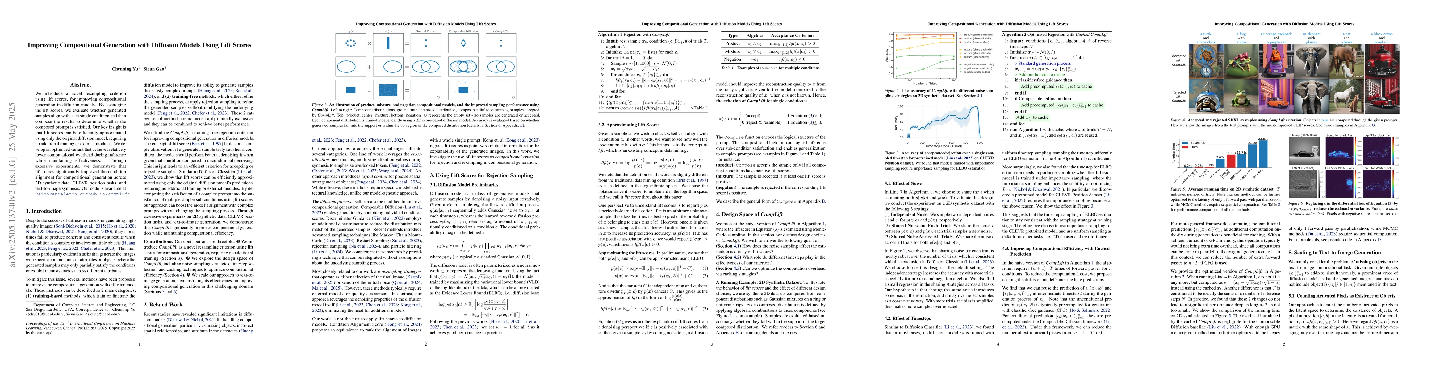 A new method using lift scores improves compositional generation in diffusion models with lower computational overhead, achieving better condition alignment across various datasets.