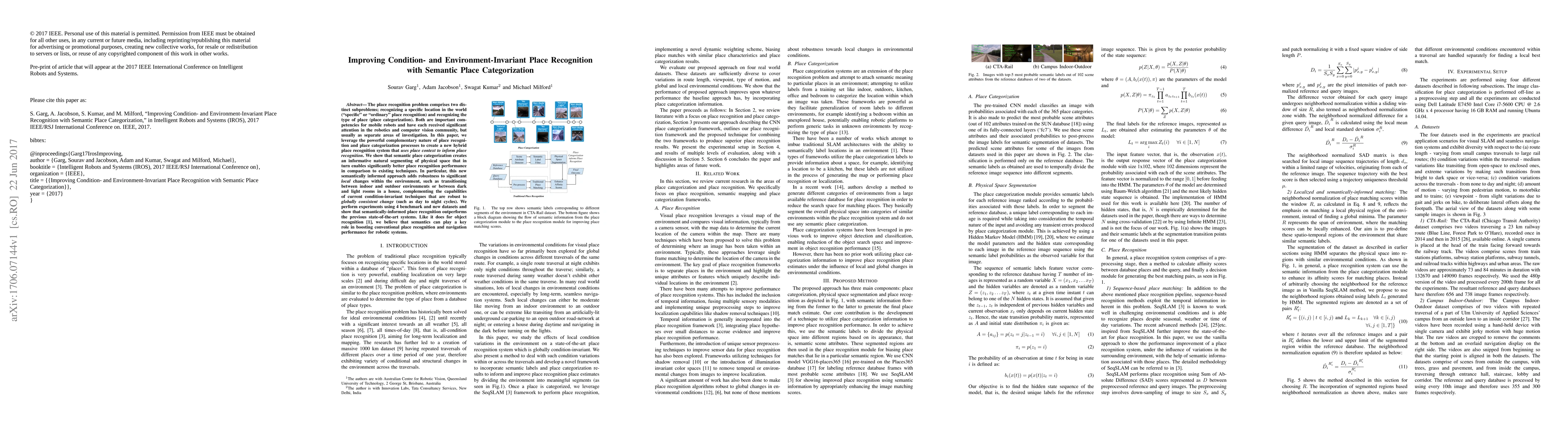 This paper proposes a hybrid place recognition system that integrates place categorization to improve condition- and environment-invariant recognition. By leveraging semantic place categorization, the system achieves better performance and robustness in recognizing locations under significant local changes, outperforming previous state-of-the-art techniques.