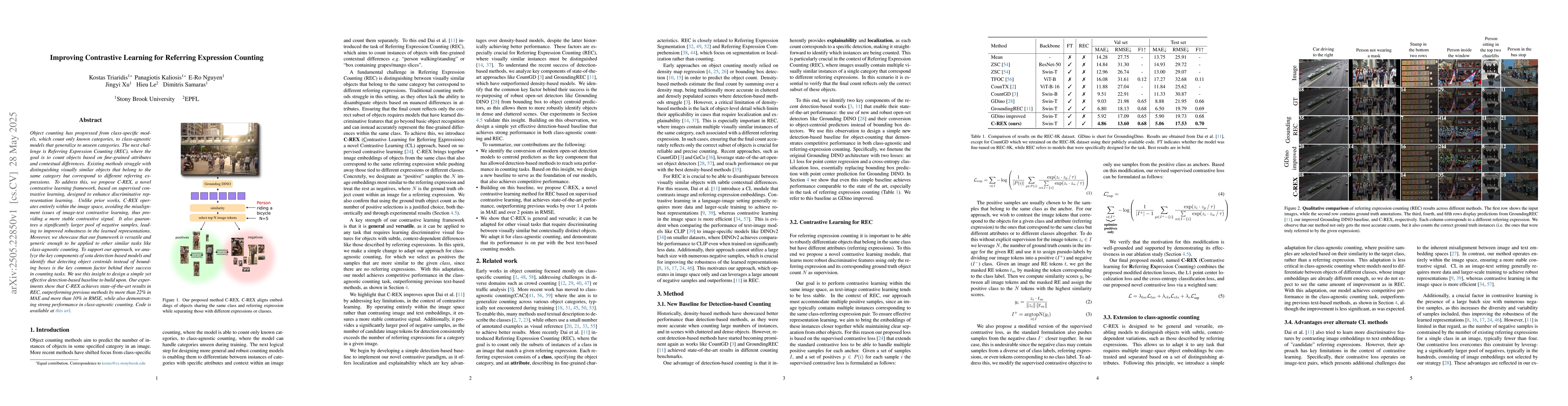 This research is important as it addresses the challenge of distinguishing visually similar objects in REC, providing a more stable contrastive signal and improving representation learning robustness. The findings can impact object counting and similar tasks, benefiting applications requiring fine-grained attribute-based counting.