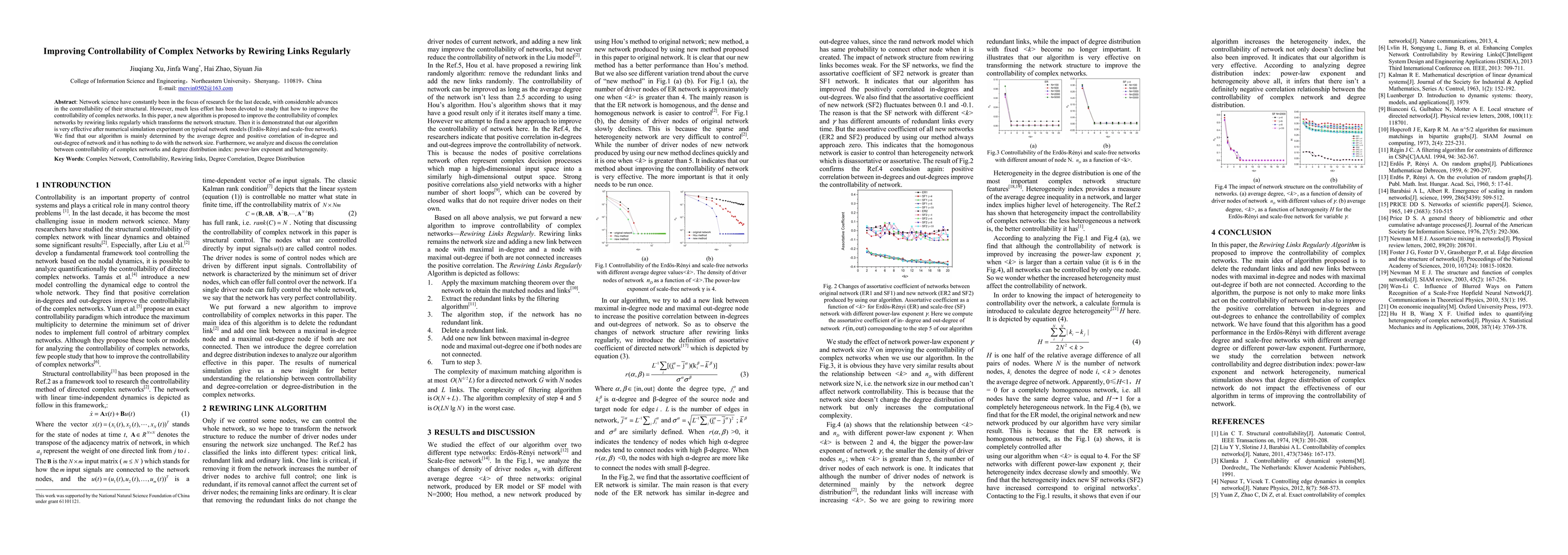 This paper proposes a new algorithm to enhance the controllability of complex networks by systematically rewiring links, which alters the network structure. The effectiveness of the algorithm is demonstrated through simulations on Erdős-Rényi and scale-free networks, showing its independence from network size but dependence on average degree and in-degree/out-degree correlation.