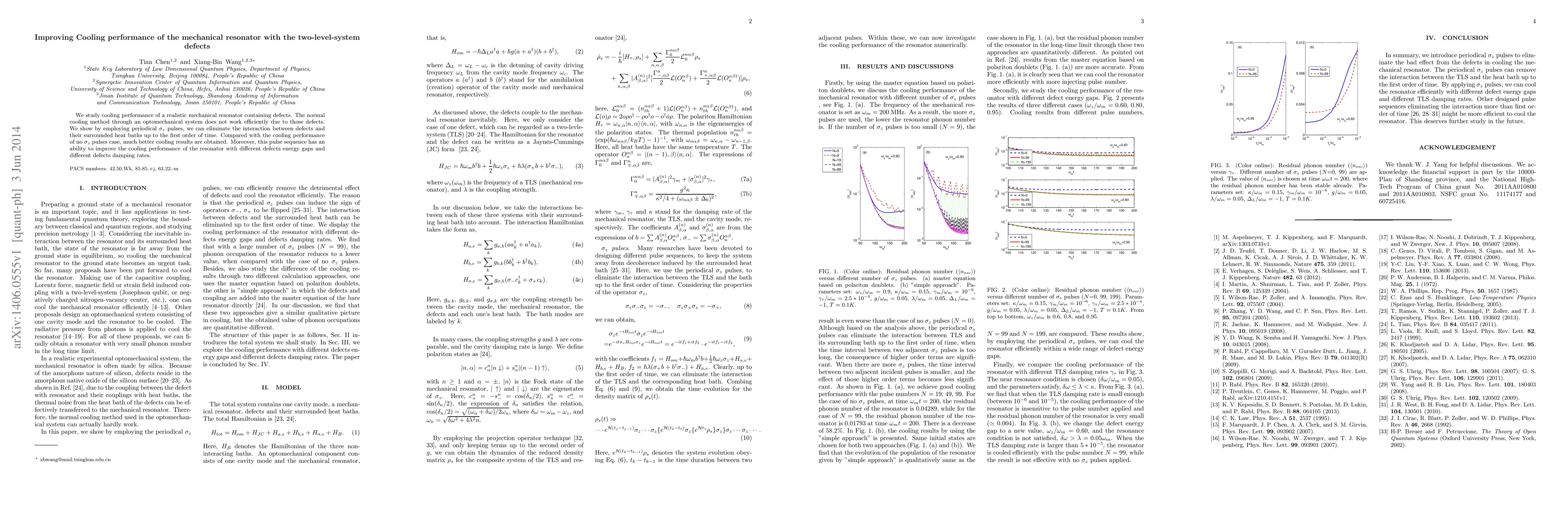 This paper investigates the cooling performance of a mechanical resonator with defects, demonstrating that traditional optomechanical cooling is inefficient. By applying periodic $\sigma_z$ pulses, the researchers effectively eliminate defect-heat bath interactions, significantly enhancing cooling performance across various defect configurations.